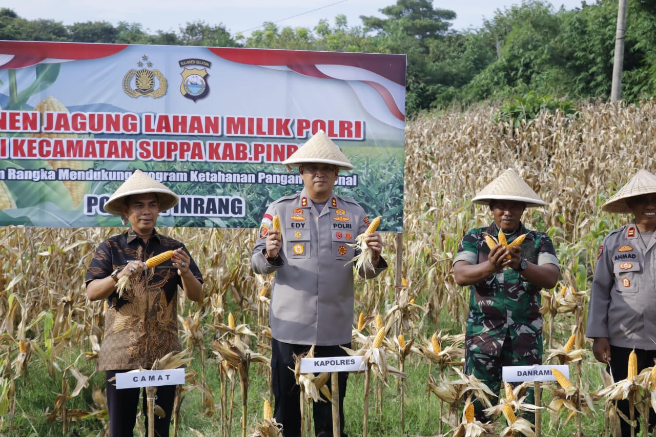 PINRANG – Kepolisian Resor (Polres) Pinrang menggelar panen jagung di lahan milik Polri yang berada di Kecamatan Suppa, Kabupaten Pinrang, pada Jumat (13/6/2025) sore. Kegiatan panen simbolis yang berlangsung di lahan Mako Dit Polair Suppa ini dipimpin langsung oleh Kapolres Pinrang, AKBP Edy Sabhara Manggabarani, S.I.K, sebagai bentuk dukungan terhadap program swasembada pangan nasional.