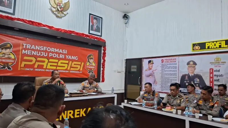 Enrekang – Mengawali pekan pertama Tahun 2026, Kapolres Enrekang AKBP Hari Budiyanto, S.H., S.I.K., M.H. memberikan arahan strategis kepada para Pejabat Utama dan Kapolsek jajaran dalam kegiatan Arahan Awal Tahun yang digelar di Aula Aryaguna Mapolres, Senin (5/1/2026).