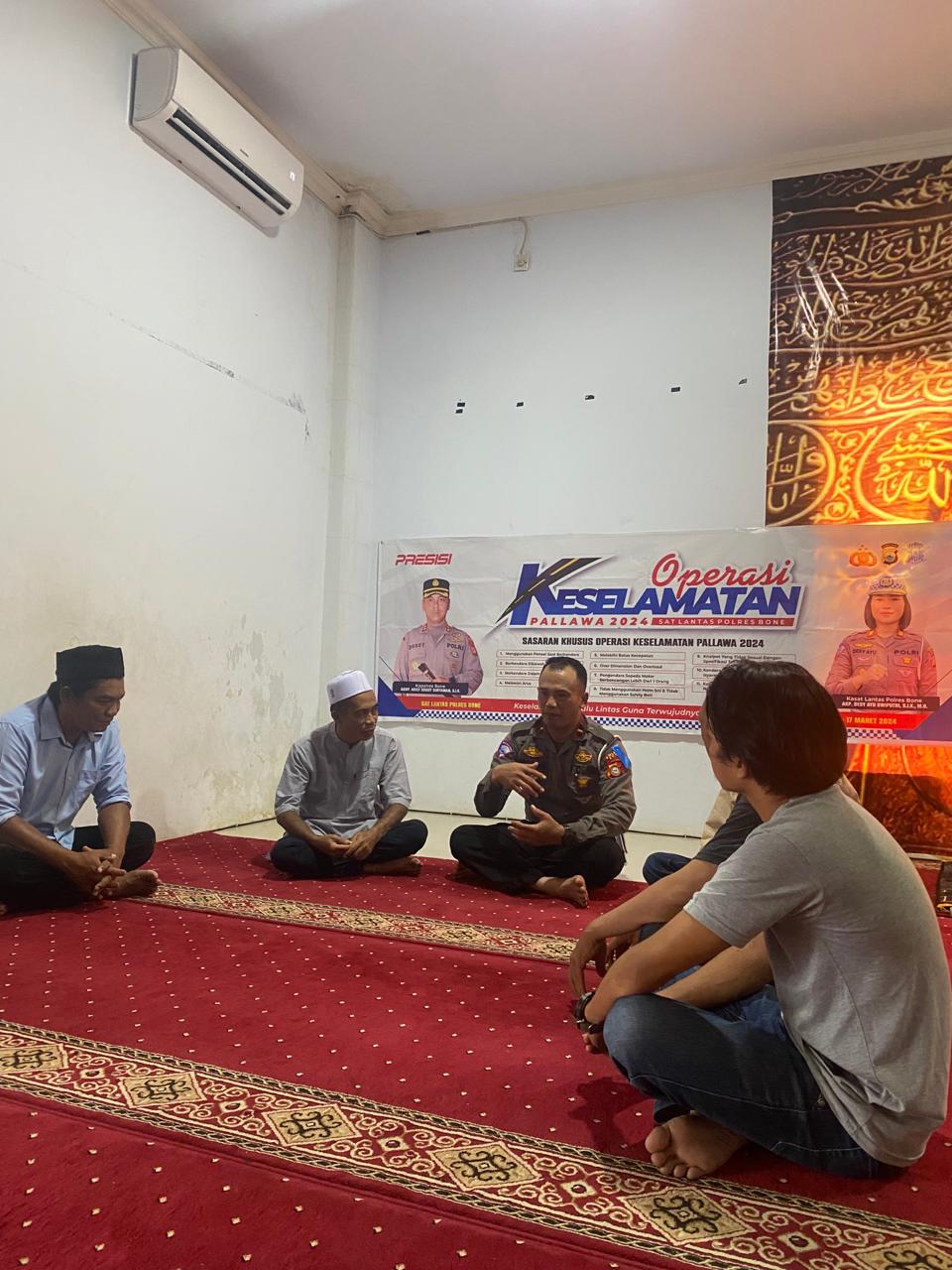 Seperti kegiatan sosialilasi yang dilakukan Kanit Kamsel Satlantas Polres Bone IPDA Ishak Yacub bersama anggotanya di Masjid Kapal Munzalan.