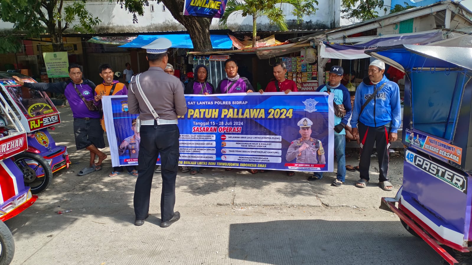 SIDRAP, 23 Juli 2024 – Memasuki hari ke-9 Operasi Patuh Pallawa 2024, Satuan Lalu Lintas (Sat Lantas) Polres Sidrap Polda Sulsel terus gencar melakukan berbagai kegiatan edukatif untuk meningkatkan kesadaran berlalu lintas di kalangan masyarakat. Hari ini, fokus utama diarahkan pada para pengendara ojek konvensional di sejumlah titik strategis di kota sidrap.