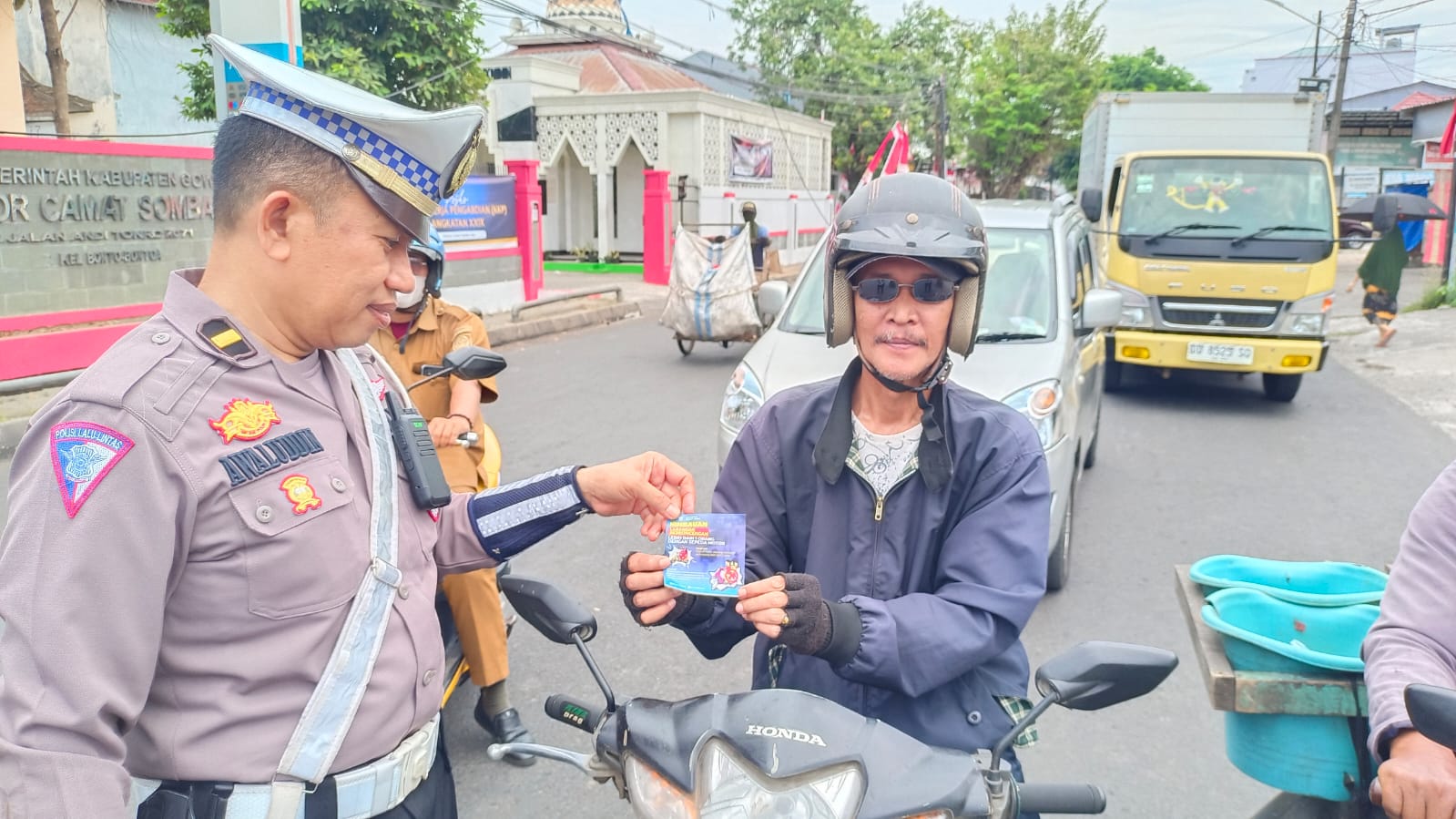 Selain itu, petugas Satlantas Polres Gowa memberikan imbauan kepada pengendara sepeda motor (R2) maupun mobil (R4) agar selalu tertib berlalu lintas dan memastikan kelengkapan kendaraan mereka.