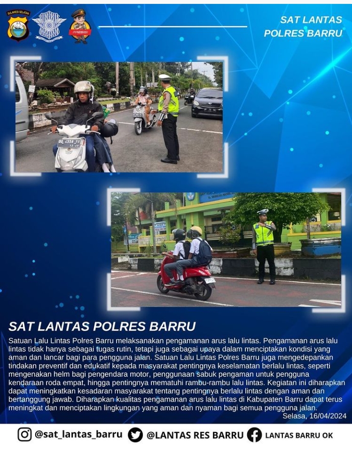 “Kami berharap kualitas pengamanan arus lalu lintas di Kabupaten Barru dapat terus meningkat dan menciptakan lingkungan yang aman dan nyaman bagi semua pengguna jalan” Jelasnya