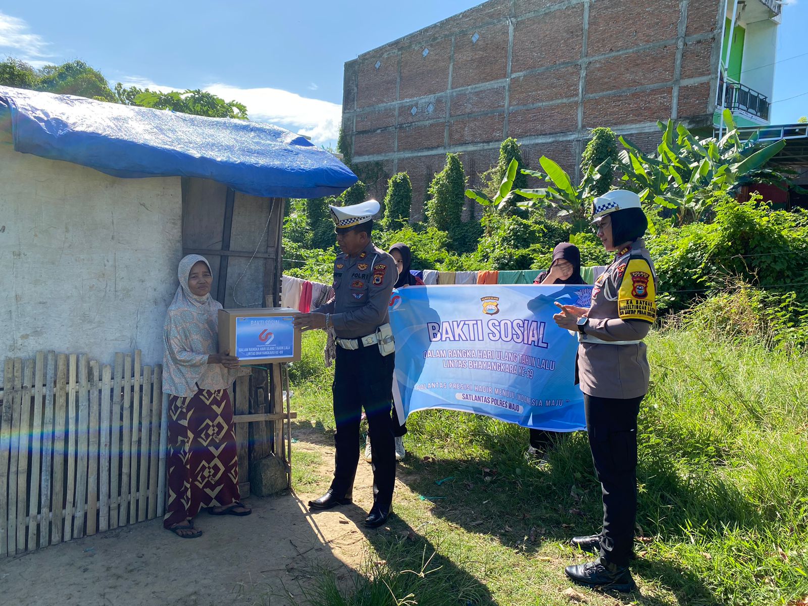 WAJO – Dalam Rangka HUT lalulintas Bhayangkara ke 69 , Satuan Lalulintas (Satlantas) Polres Wajo berbagi sembako kepada warga kurang mampu di wilayah hukum Polres Wajo, senin (09/09/2024).