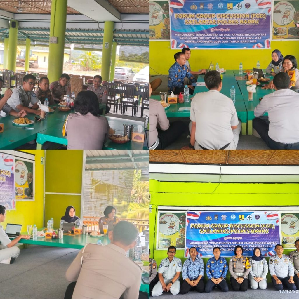Kegaitan Forum Group Discussion yang di gelar untuk memdukung Kamseltibcarlantas dan mengurangi fatalitas laka menjelang Natal dan Tahun Baru 2025 di laksanakan di Rumah Makan Dapur Empang, Kec. Barru, Kab. Barru, Selasa (17/12/2024).