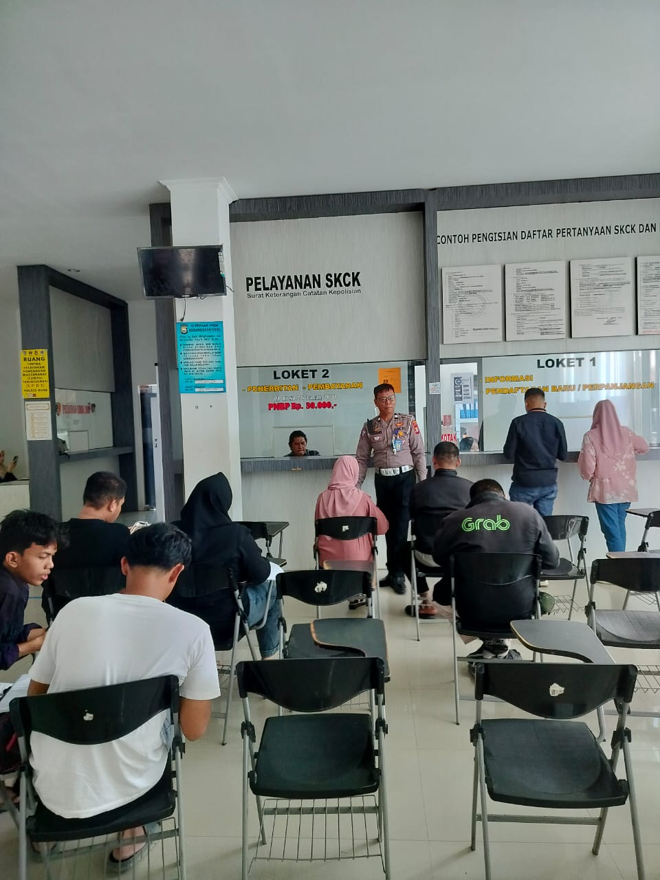 BONE – Personel Satlantas Polres Bone melaksanakan sosialisasi dan edukasi tentang pengawalan jenazah kepada masyarakat di ruang tunggu pelayanan SIM dan SKCK di Gedung Pelayanan Terpadu Polres Bone, Kamis (5/9/2024).