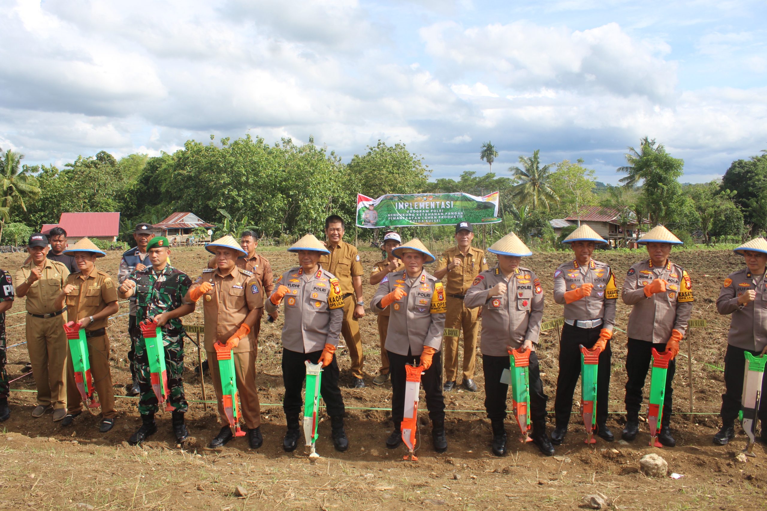 “Adapun luas lahan yang akan digunakan untuk program ketahanan pangan sebanyak 63 hektar. Lahannya akan digarap langsung oleh kelompok tani setempat dengan kerjasama pihak PTPN Bone”, Jelas Kapolres Bone.