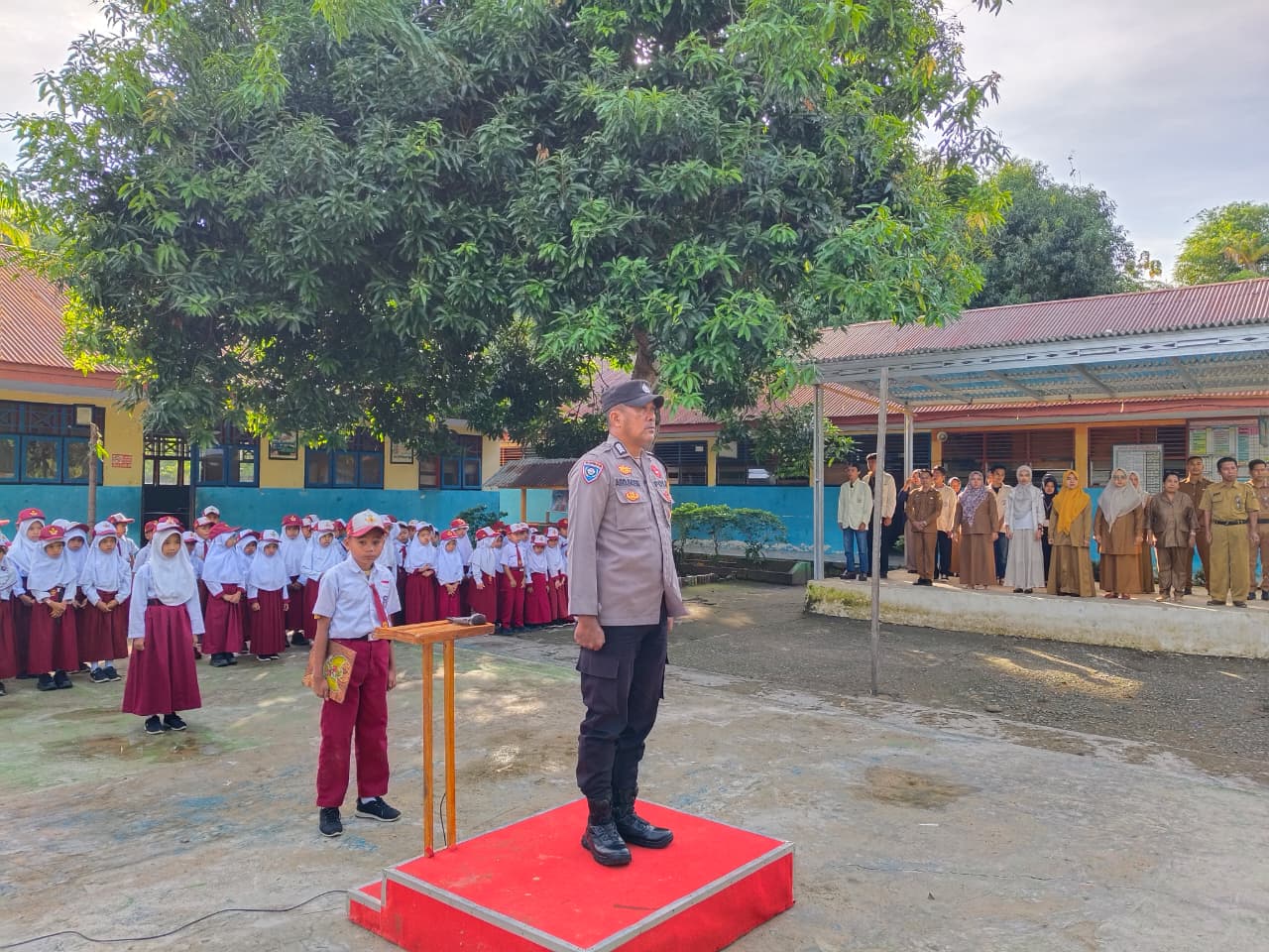 Jadi Pembina Upacara di SD Negeri 03 Mosso, Personel Polsek Malunda Penyuluhan Tertib Lalu Lintas dan Bahaya Bullying