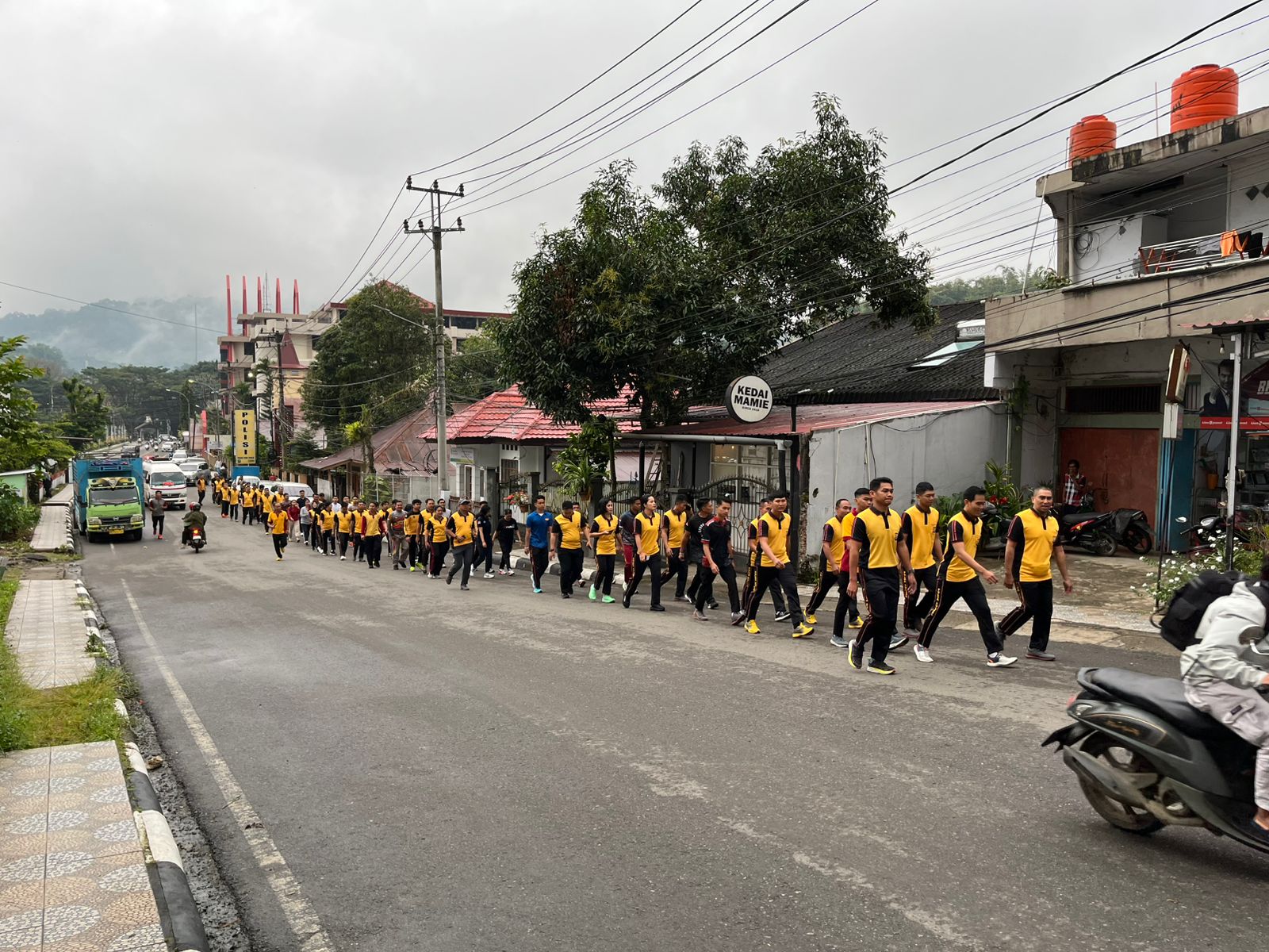 Rangkaian pemanasan bersama berlangsung selama 20 menit, dilanjutkan dengan jalan santai dan Lari ke luar Mapolres Tana Toraja. Kegiatan ini dipimpin langsung oleh Wakapolres Tana Toraja Kompol A. Madenanri.