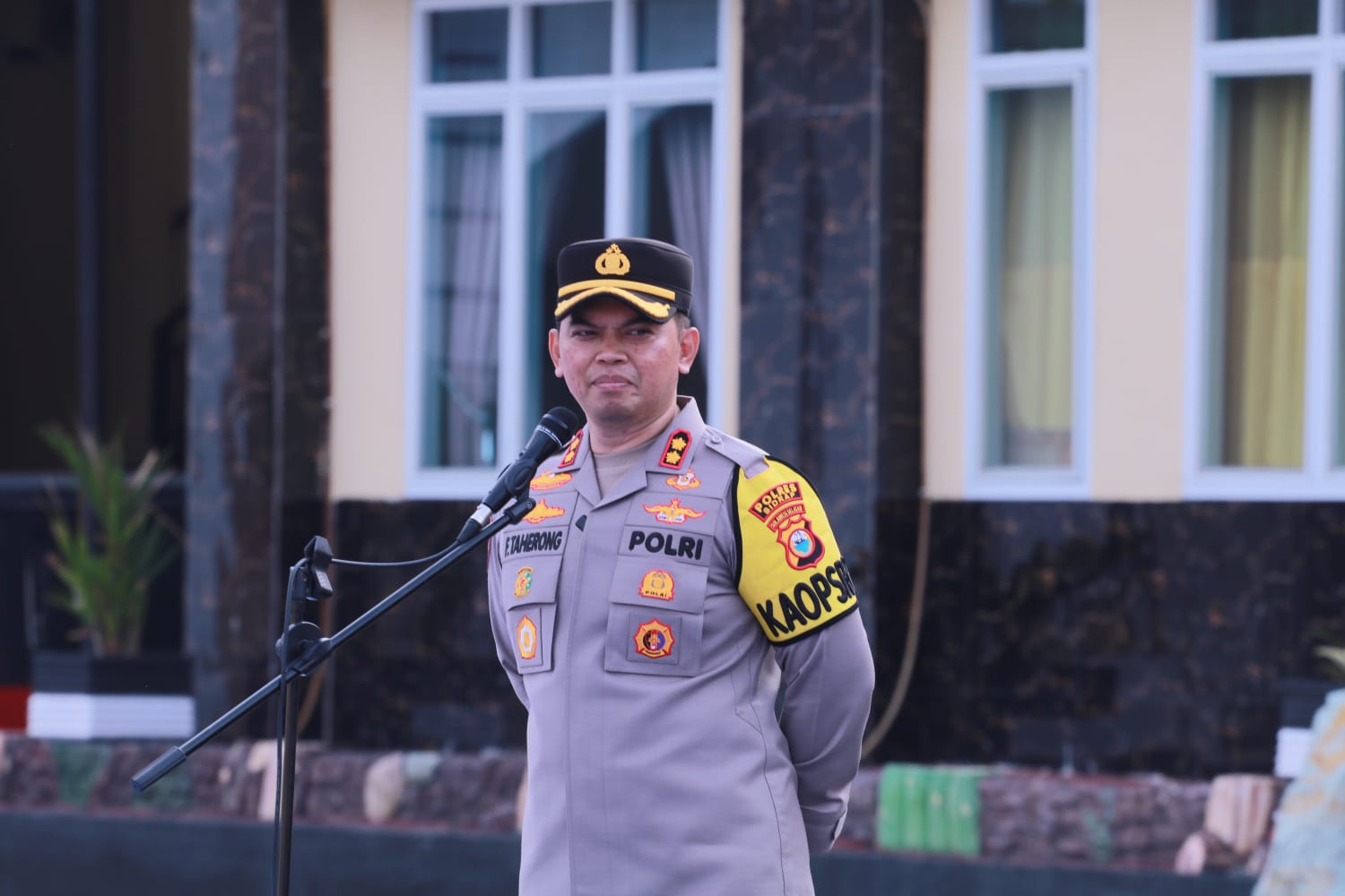 SIDRAP – Kapolres Sidrap, AKBP Dr. Fantry Taherong, S.H., S.I.K., M.H., kembali memimpin apel pagi yang berlangsung di halaman Mapolres Sidrap, Kamis (24/10/2024). Dalam arahannya, Kapolres menekankan pentingnya netralitas anggota Polri dalam pelaksanaan Pemilihan Kepala Daerah (Pilkada) 2024.