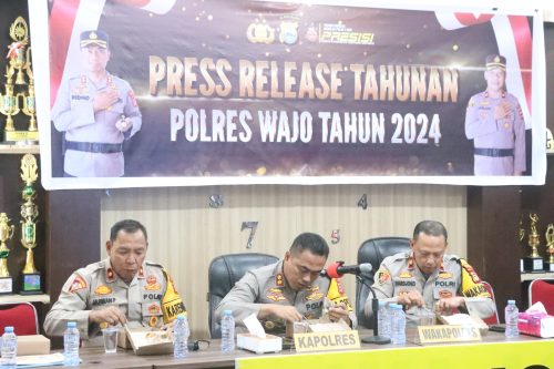 Kapolres AKBP Rosid didampingi pejabat Polres Wajo mengucapkan terimakasih atas kehadiran dan kesediaan para wartawan media cetak, elektronik dan online di Kabupaten Wajo.