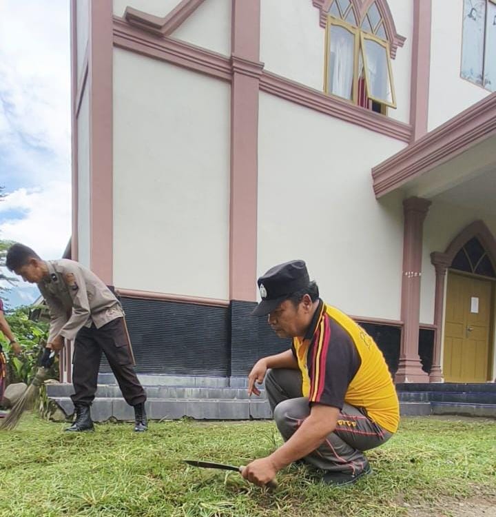 Seperti yang dilakukan Polsek Makale dengan melakukan kegiatan bhakti religi yakni membersihkan lingkungan dan fasilitas yang ada di ibadah ibadah Gereja Toraja Jemaat Maroangin, Kelurahan Ratte Buttu, Kecamatan Bonggakaradeng, Kabupaten Tana Toraja, Senin (30/06/25). Yang dipimpin langsung Kapolsek Bonggakaradeng, Ipda Daud Beny dengan melibatkan 10 personil bersama jemaat dan warga sekitar