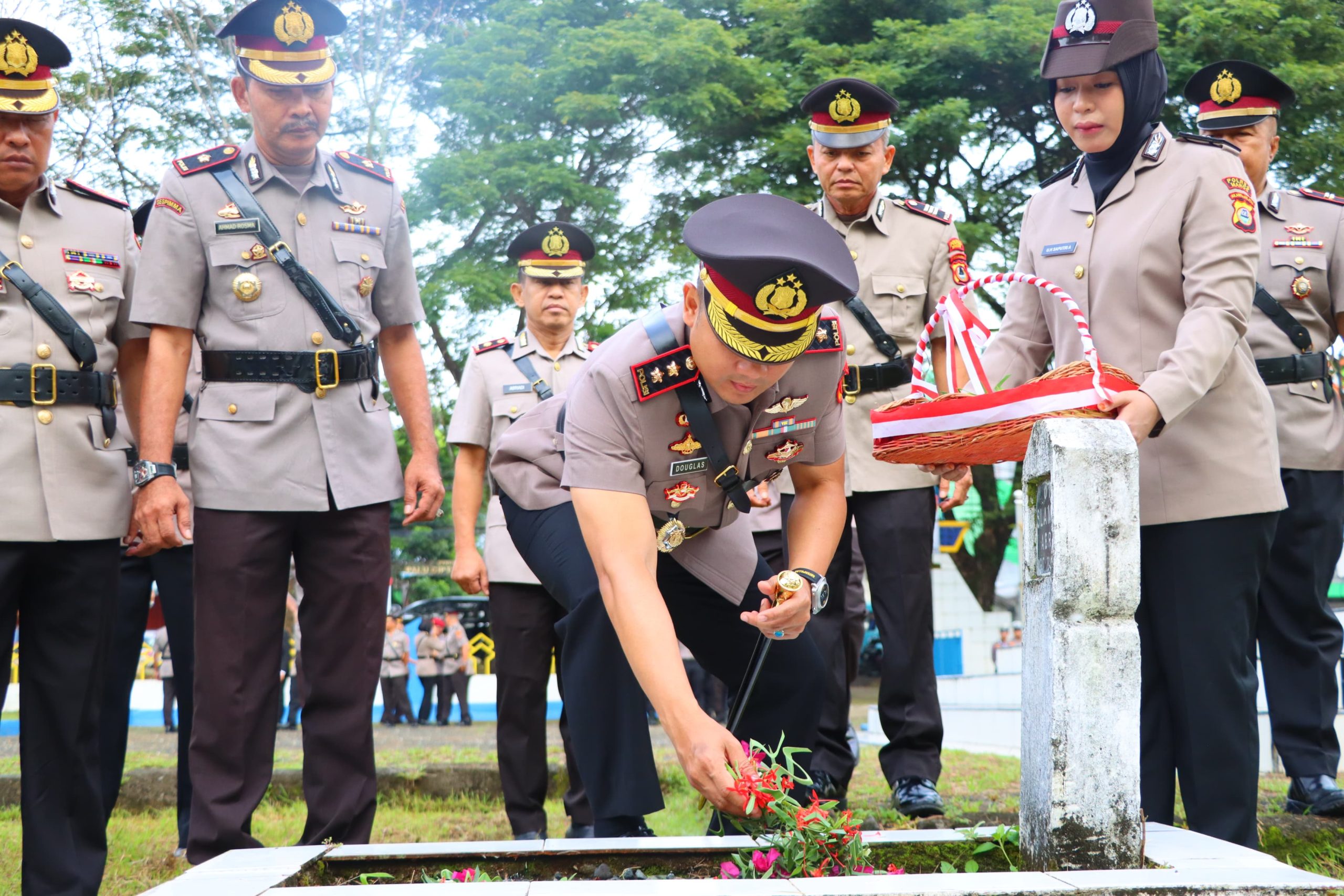 “Ziarah ini adalah bentuk penghormatan kami kepada para pahlawan. Semangat juang mereka menjadi motivasi bagi kami untuk terus mengabdi kepada masyarakat, bangsa, dan negara,” ujar AKBP Douglas.