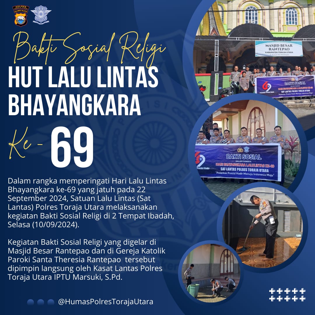 Kegiatan Bakti Sosial Religi yang digelar di Masjid Besar Rantepao dan di Gereja Katolik Paroki Santa Theresia Rantepao tersebut dipimpin langsung oleh Kasat Lantas Polres Toraja Utara IPTU Marsuki, S.Pd.