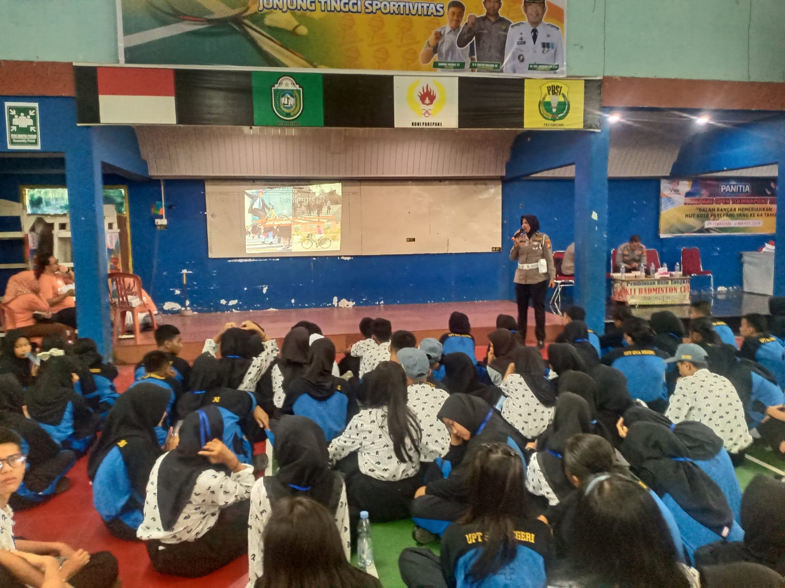 Kanit Kamsel, Ipda Sumiati, pengemban amanah dari sosialisasi ini, memberikan edukasi tertib berlalu lintas yang perlu diketahui oleh kalangan pelajar.