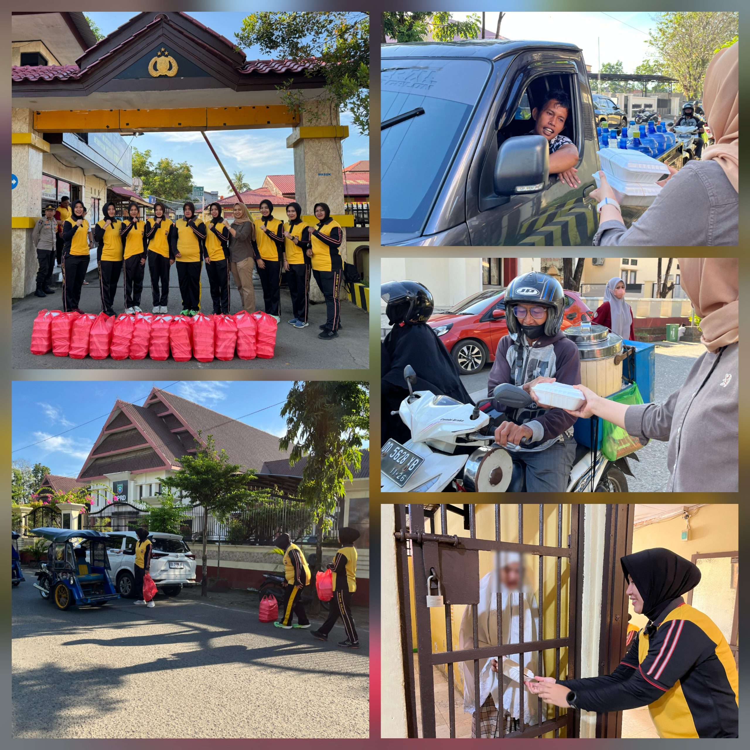 Dengan penuh keramahan dan keikhlasan, para Polwan menyambangi pengendara motor, tukang becak, sopir angkutan hingga pejalan kaki untuk membagikan nasi kotak. Tidak hanya itu, sebagai bentuk kepedulian terhadap sesama, Polwan juga menyempatkan membagikan makanan kepada para tahanan sebagai wujud empati dan perhatian terhadap hak-hak dasar mereka.