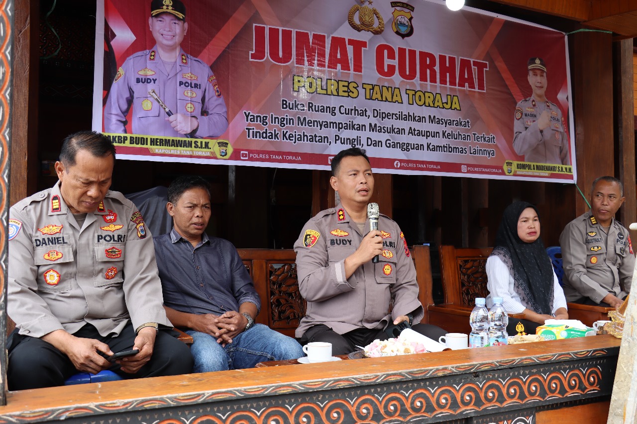 Tana Toraja, – Kapolres Tana Toraja, AKBP Budi Hermawan, S.I.K, bersama personilnya kembali gelar giat Jumat Curhat. Kegiatan kali ini Polres Tana Toraja menyambangi warga di Lembang Kaduaja Kecamatan Gandasil Kabupaten Tana Toraja pada Jumat (20/6/25) siang tadi.