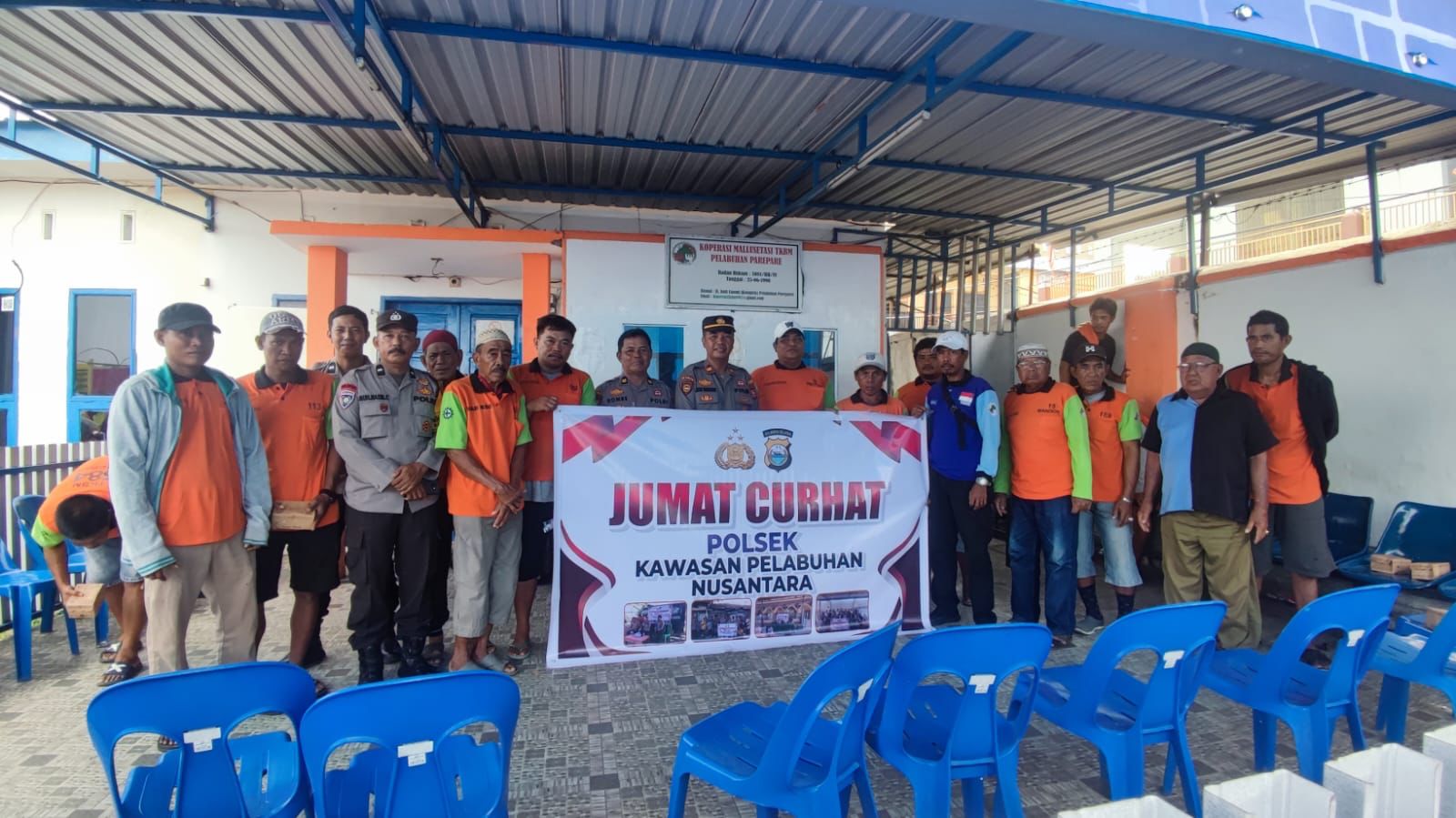 Parepare — Polsek Kawasan Pelabuhan Nusantara atau Polsek KPN Polres Parepare kembali melakukan kegiatan Jumat Curhat dengan peserta dari kalangan buruh pelabuhan Nusantara atau yang di sebut TKBM, Tenaga Kerja Bongkar Muat.