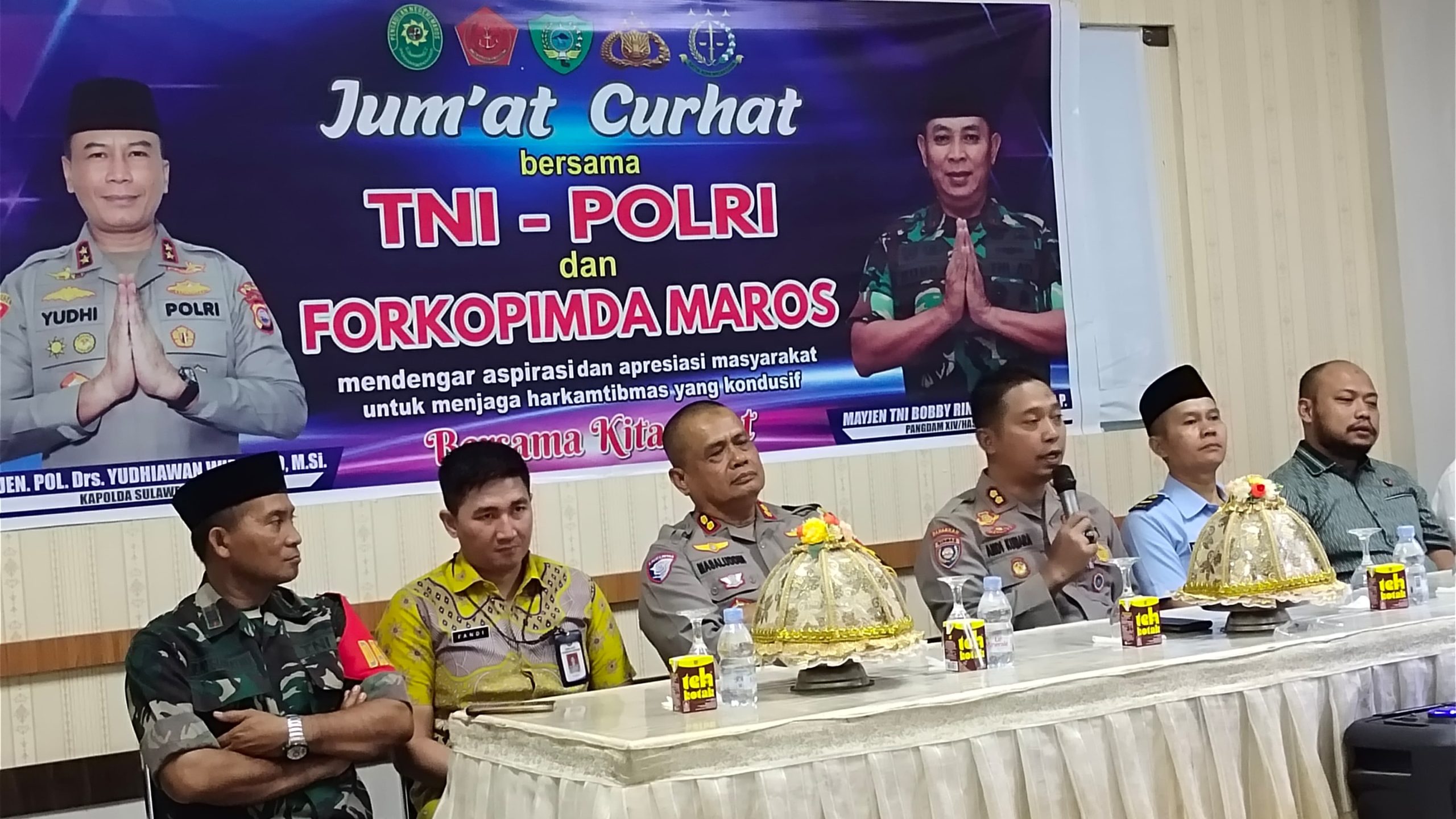 Jumat curhat bersama TNI-Polri dan Forkopimda Maros dipimpin Kapolda Sulsel Irjen Pol. Drs. Yudhiawan Wibisono, M.Si yang diwakili Wadir Binmas AKBP Andi Kumara, S.H., S.I.K., M.Si.
