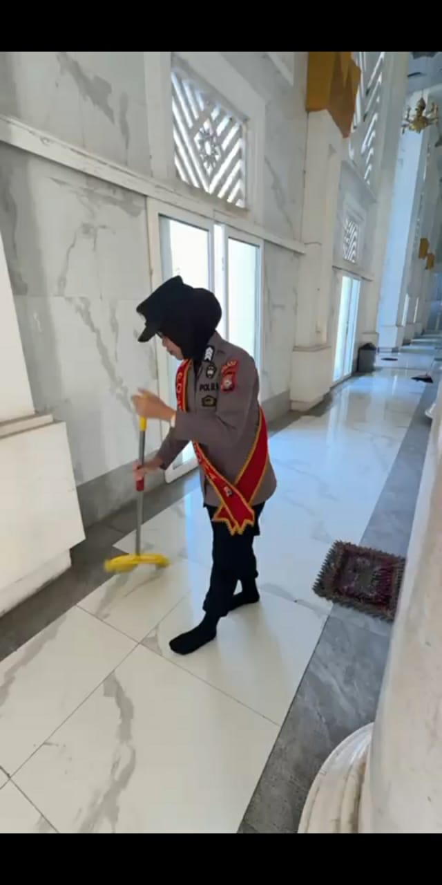 Dengan mengenakan seragam dinas, para Polwan tampak antusias dan kompak membersihkan area dalam masjid, tempat wudhu, halaman, hingga fasilitas umum lainnya. Aksi tersebut juga bertujuan menciptakan lingkungan ibadah yang bersih dan nyaman bagi para jamaah.