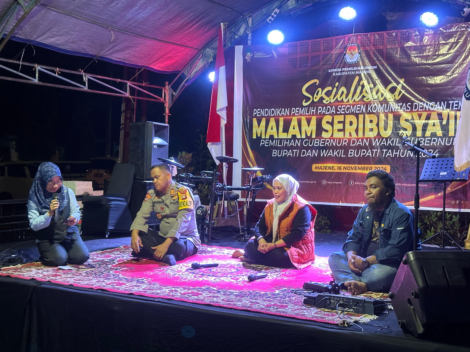 Majene – Dalam rangka menyukseskan pelaksanaan Pemilihan Kepala Daerah (Pilkada) Tahun 2024, Komisi Pemilihan Umum (KPU) Kabupaten Majene menggelar kegiatan Malam Seribu Sya’ir dengan tema “Pilkada Majene Lalla’ Tambottu Diallewuang”.