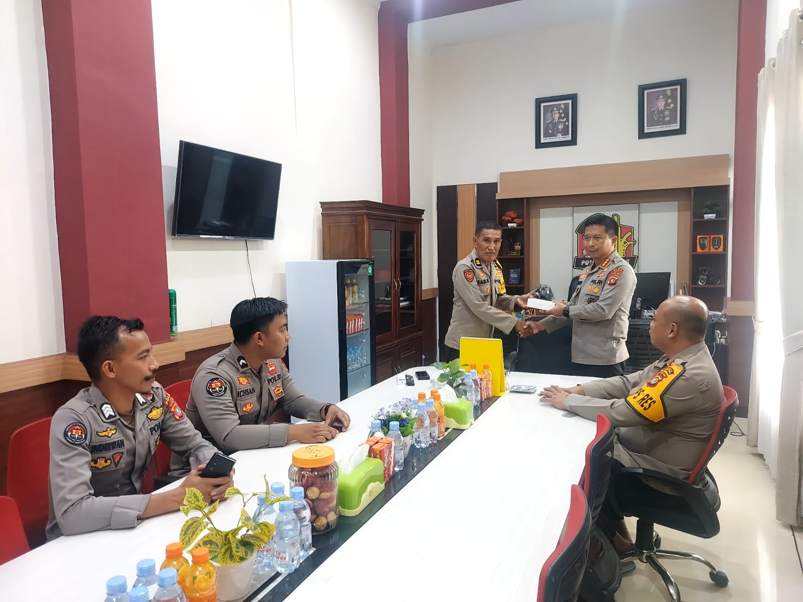 Usai sambutan dan arahan, tim supervisi bersama Kabid Humas melakukan pengecekan langsung terhadap ruangan Humas Polres Mamuju Tengah. Mereka memeriksa kelengkapan administrasi, produk-produk kehumasan yang telah dilaksanakan, serta memberikan sarana penunjang tugas kehumasan yang diperlukan untuk mendukung kinerja Humas di Polres Mamuju Tengah.