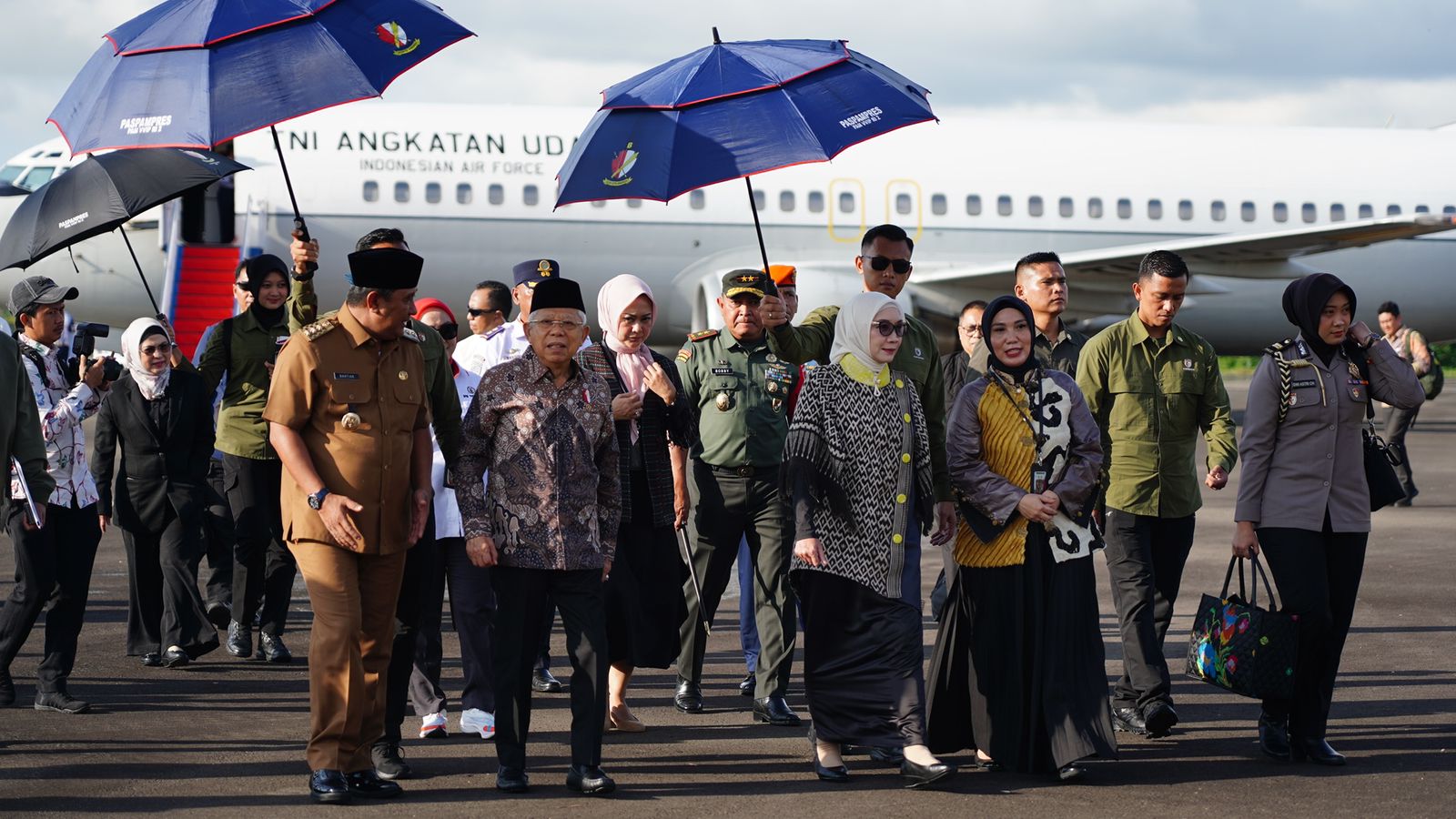 Polda Sulbar – Kepolda, Irjen Pol Adang Ginanjar bersama seluruh forkopimda terlihat memberikan sambutan hangatnya kepada Wakil Presiden K.H. Ma’ruf Amin saat tiba di bandara tampa padang, Selasa (21/5/24).