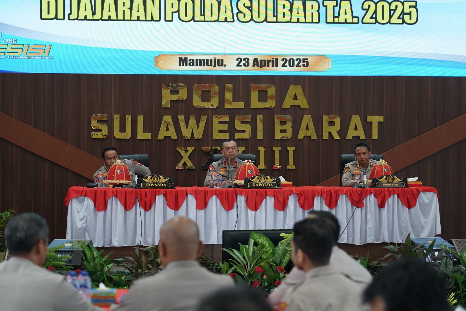 Polda Sulbar – Kapolda Sulbar Irjen Pol Adang Ginanjar didampingi Irwasda dan Karo SDM membuka secara langsung kegiatan taklimat awal audit kinerja tahap I Aspek perencanaan dan pengorganisasian, Senin (23/4/25) di Aula Marannu Mapolda.