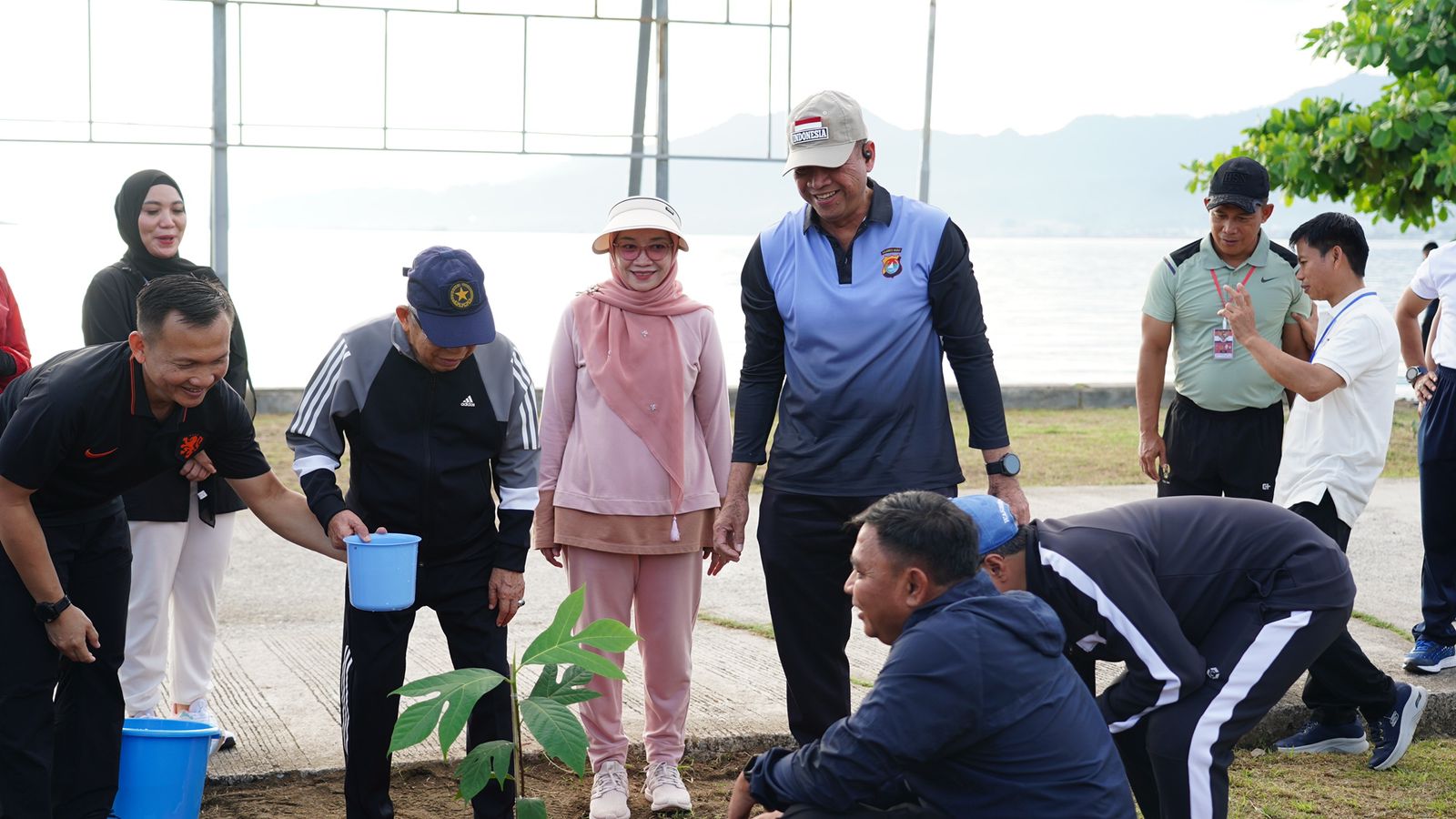 Selain kegiatan olahraga bersama di jalan arteri, Wapres RI K.H. Ma’ruf Amin juga melakukan aksi sosial dengan menanam sukun di sekitar kantor Lanal Mamuju.