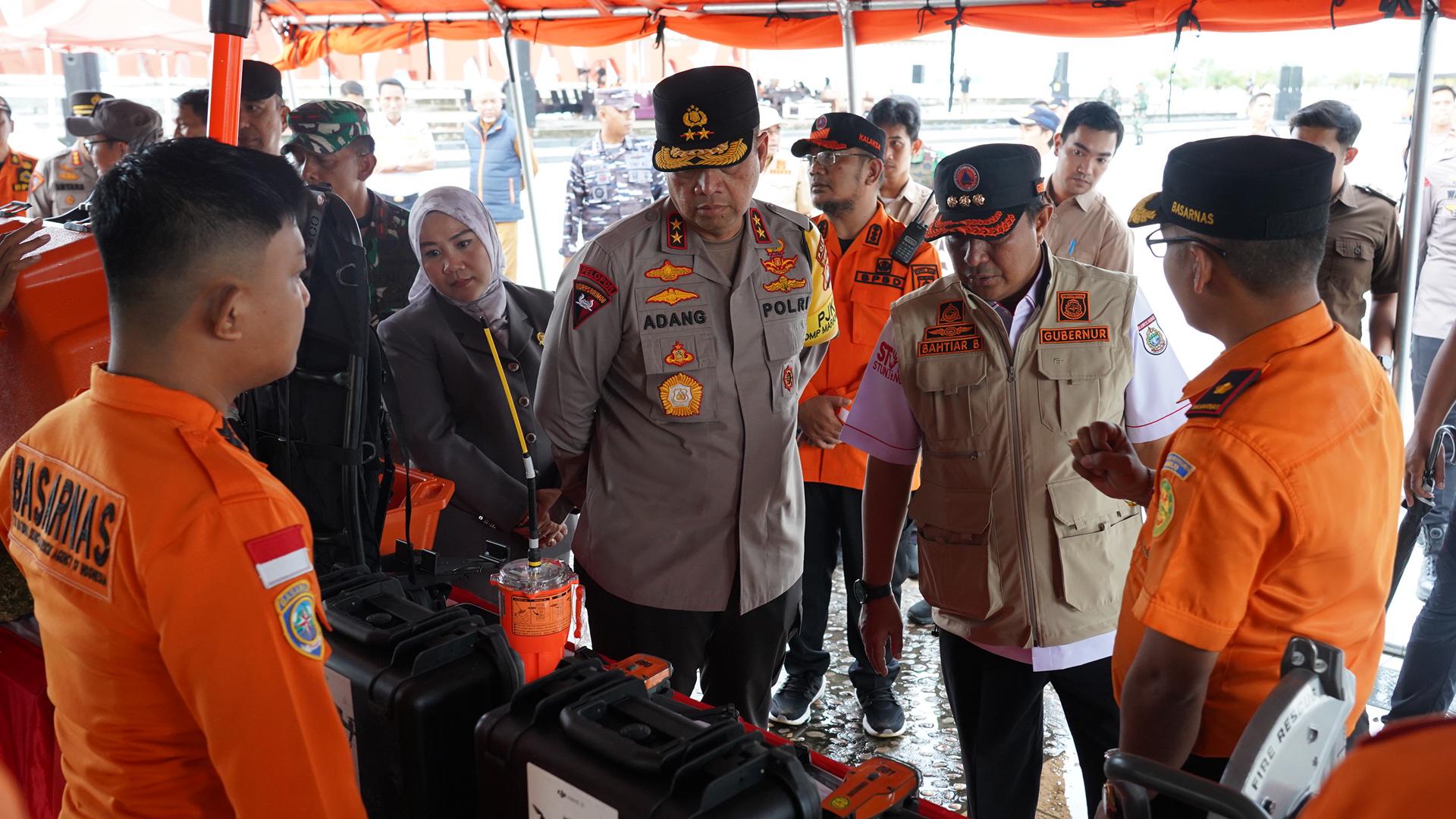 Polda Sulbar – Kapolda Sulbar Irjen Pol Adang Ginanjar menghadiri apel gelar pasukan dan peralatan dalam rangka peningkatan kesiapsiagaan menghadapi bencana hidrometeorologi, Senin (25/11/24) di Anjungan pantai Manakarra.
