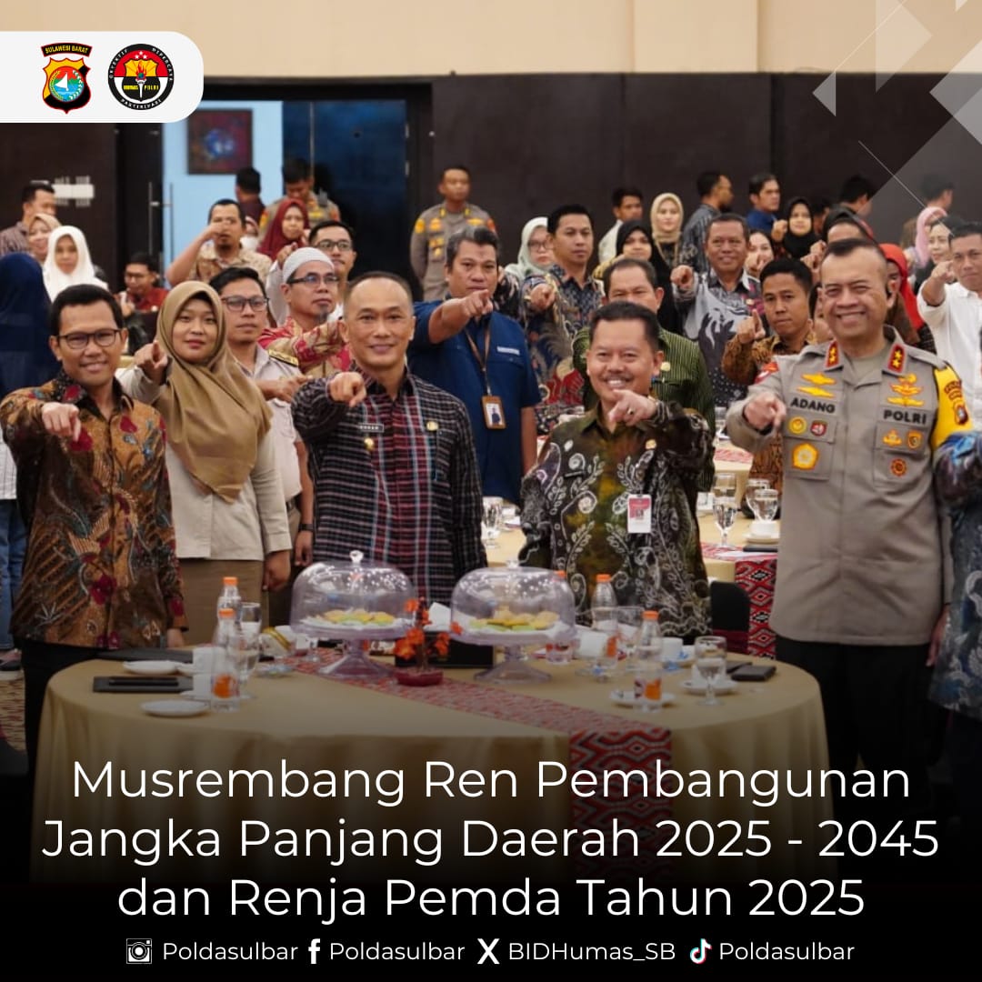 MAMUJU — Kapolda Sulawesi Barat Irjen Pol Adang Ginanjar menghadiri Musyawarah Rencana Pembangunan (Musrenbang) Rencana Pembangunan Jangka Panjang Daerah (RPJPD) 2025-2045 dan Rencana Kerja Perangkat Daerah (RKPD) 2025 tingkat Provinsi Sulbar.