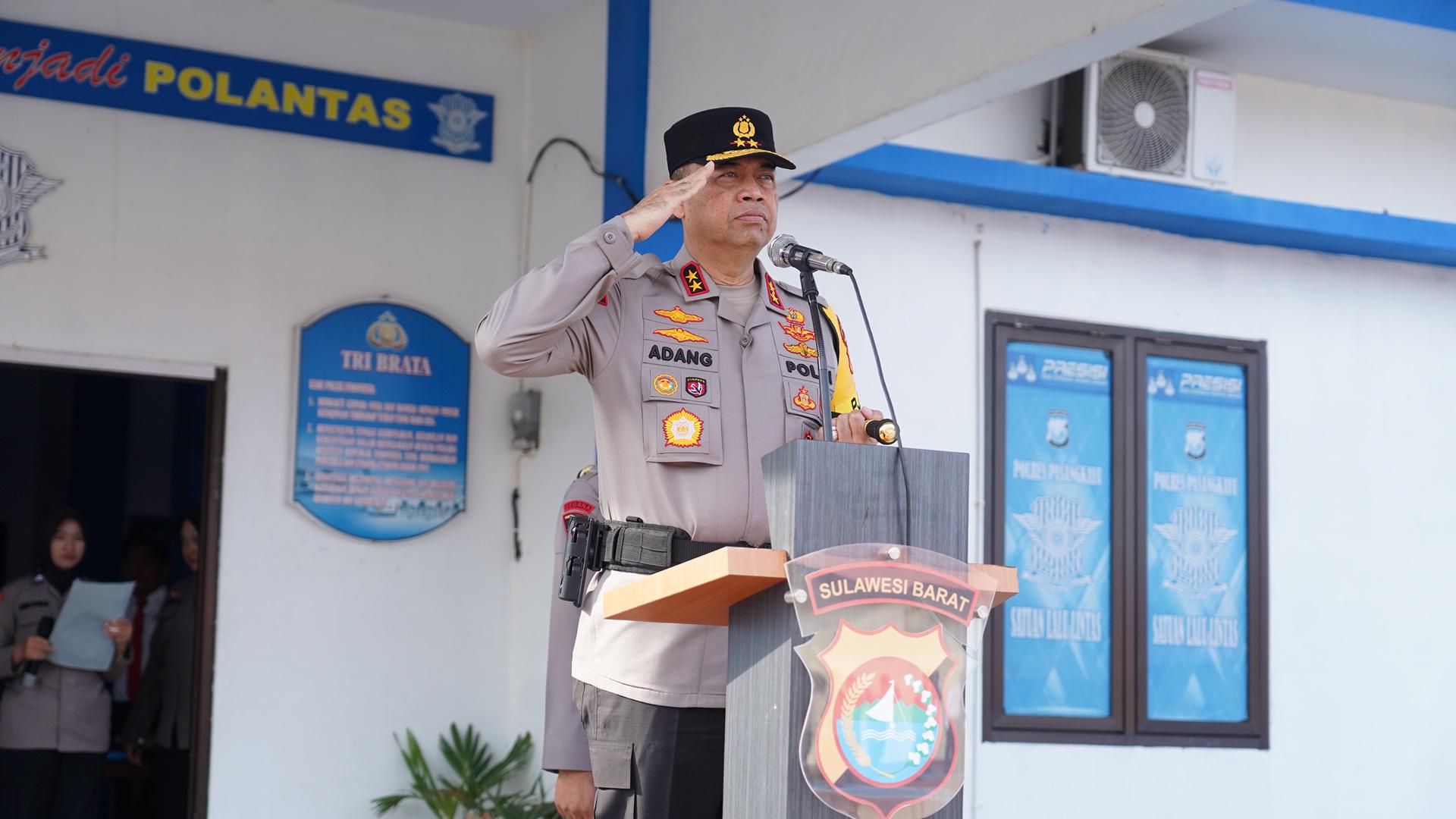 Polda Sulbar – Irjen Pol. Adang Ginanjar, Kapolda Sulawesi Barat (Sulbar), memimpin langsung Upacara Hari Kesadaran Nasional (HKN) yang digelar di halaman Mapolres Pasangkayu. Kehadiran Kapolda Sulbar dalam upacara tersebut merupakan bagian dari kunjungan kerjanya ke wilayah hukum Polres Pasangkayu, Selasa (17/9/24).