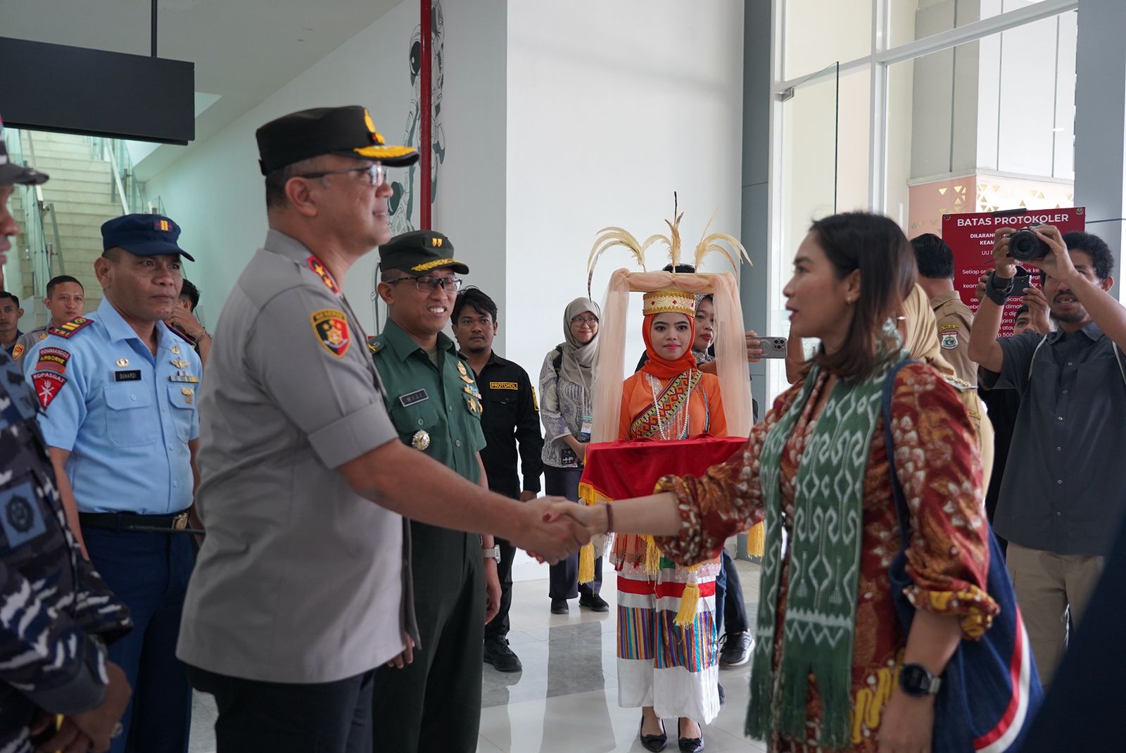 Tiba di bandara, Ni Luh Putu Elvina Puspasari disambut dengan tarian adat Mamuju serta pengalungan bunga sebagai simbol penghormatan dan selamat datang. Suasana penyambutan yang hangat ini mencerminkan antusiasme masyarakat Sulawesi Barat dalam menyambut kunjungan penting tersebut.