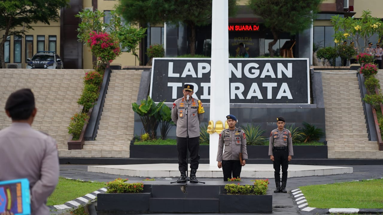 Penekanan 6 poin penting Kapolda ini kembali ditegaskan saat pelaksanaan apel pagi kepada seluruh personel sebagai komitmen kuat mendukung penuh pembangunan nasional, Jumat (6/12/24) di lapangan Tribrata Mapolda.
