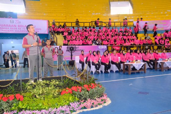Makassar – Kapolda Sulawesi Selatan, Irjen Pol. Drs. Rusdi Hartono, M.Si., didampingi Ketua Bhayangkari Daerah Sulsel, Ny. Irena Rusdi Hartono, menghadiri Upacara Pembukaan Turnamen Bola Voli Bhayangkari se-Daerah Sulsel yang digelar di Lapangan Voli GOR Sudiang, Kota Makassar, Selasa, 15 Juli 2025.
