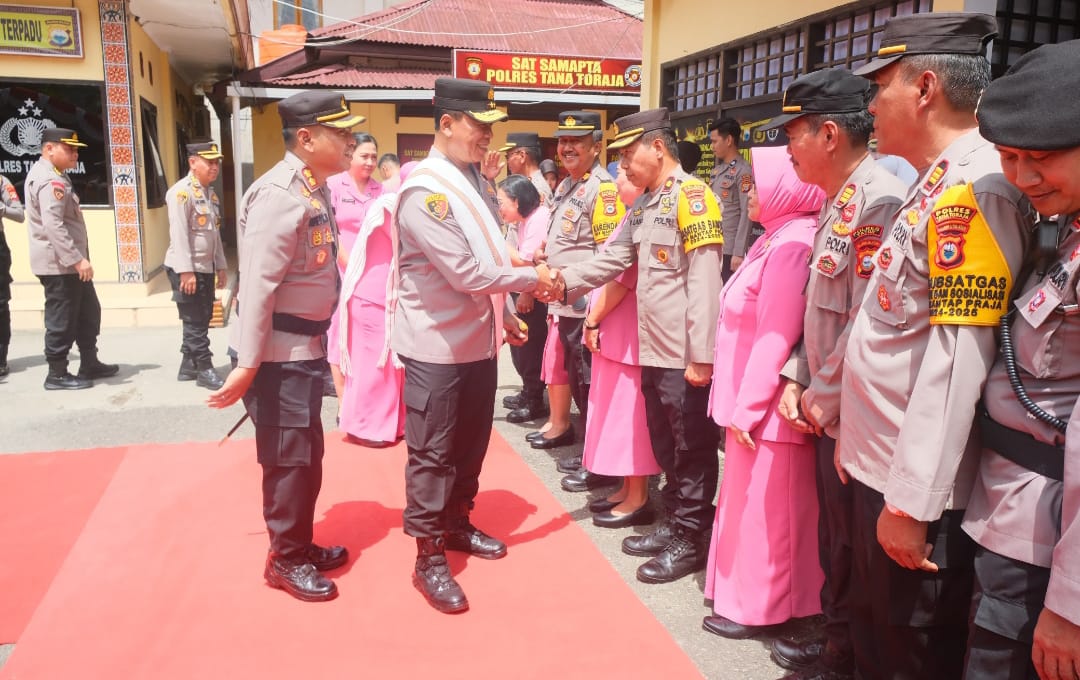 Kunjungan ini disambut langsung oleh Kapolres Tana Toraja AKBP Malpa Malacoppo, S.H., S.I.K., M.I.K., beserta jajaran dengan prosesi pengalungan bunga dan jajar kehormatan. Acara ini turut dihadiri oleh Para Pejabat Utama (PJU) Polres Tana Toraja dan Forkopimda Kabupaten Tana Toraja.