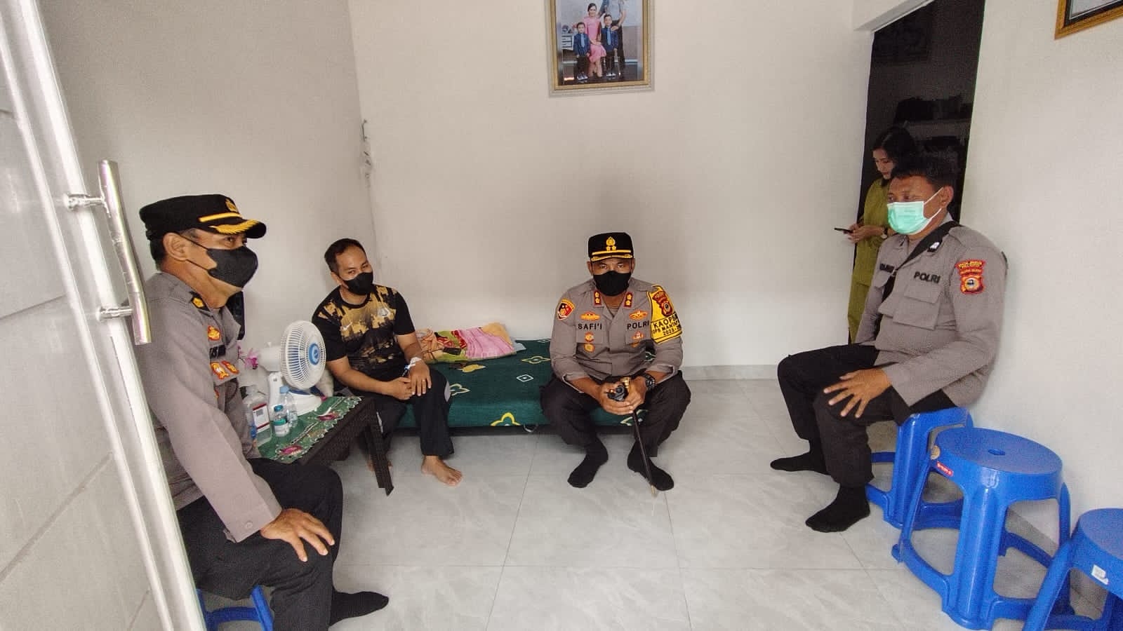 PALOPO – Kapolres Palopo, AKBP Safi’i Nafsikin membesuk anggotanya yang sakit akibat kelelahan pengamanan pemilu 2024, Kamis (15/2/2024).