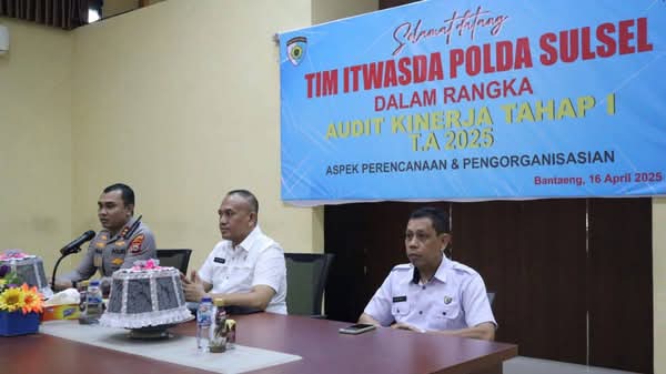 “Selamat datang kepada tim Itwasda Polda Sulsel dalam rangka audit kinerja tahap 1 di Polres Bantaeng, Kami sangat senang mendapat kunjungan ini agar dapat lebih memahami dalam bidang pengawasan kinerja sehingga dapat dijadikan bekal dan pedoman untuk meningkatkan kinerja seluruh personel Polres Bantaeng di masa yang akan datang,” kata Kapolres Bantaeng