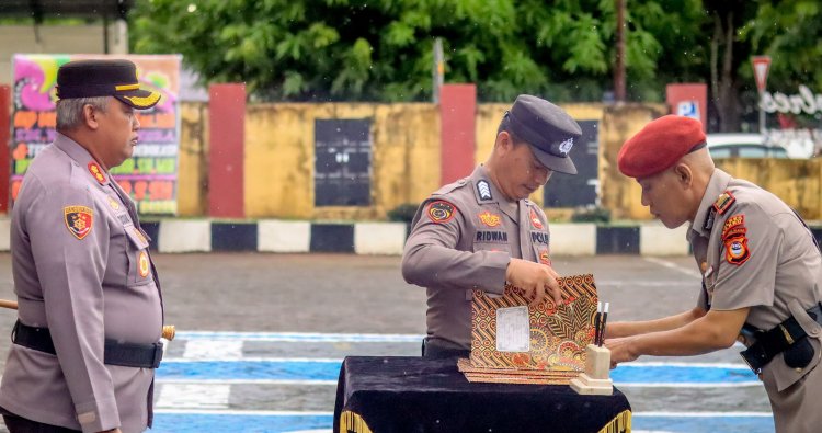 BARRU – Upacara serima terima jabatan (Sertijab) pejabat utama (PJU) lingkup Kepolisian Resor (Polres) Barru berlangsung di halaman Polres Barru, pada Kamis (12/6/2025).