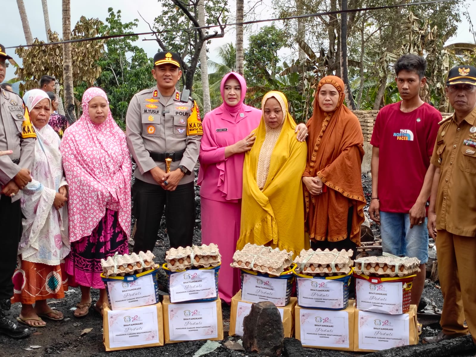 Bantuan dari Kapolres dan Ketua Bhayangkari Cabang Soppeng,diterima langsung oleh warga korban kebakaran yakni, Ahmad,Nasire,Feriyanto,Arsyad dan H.Huga.