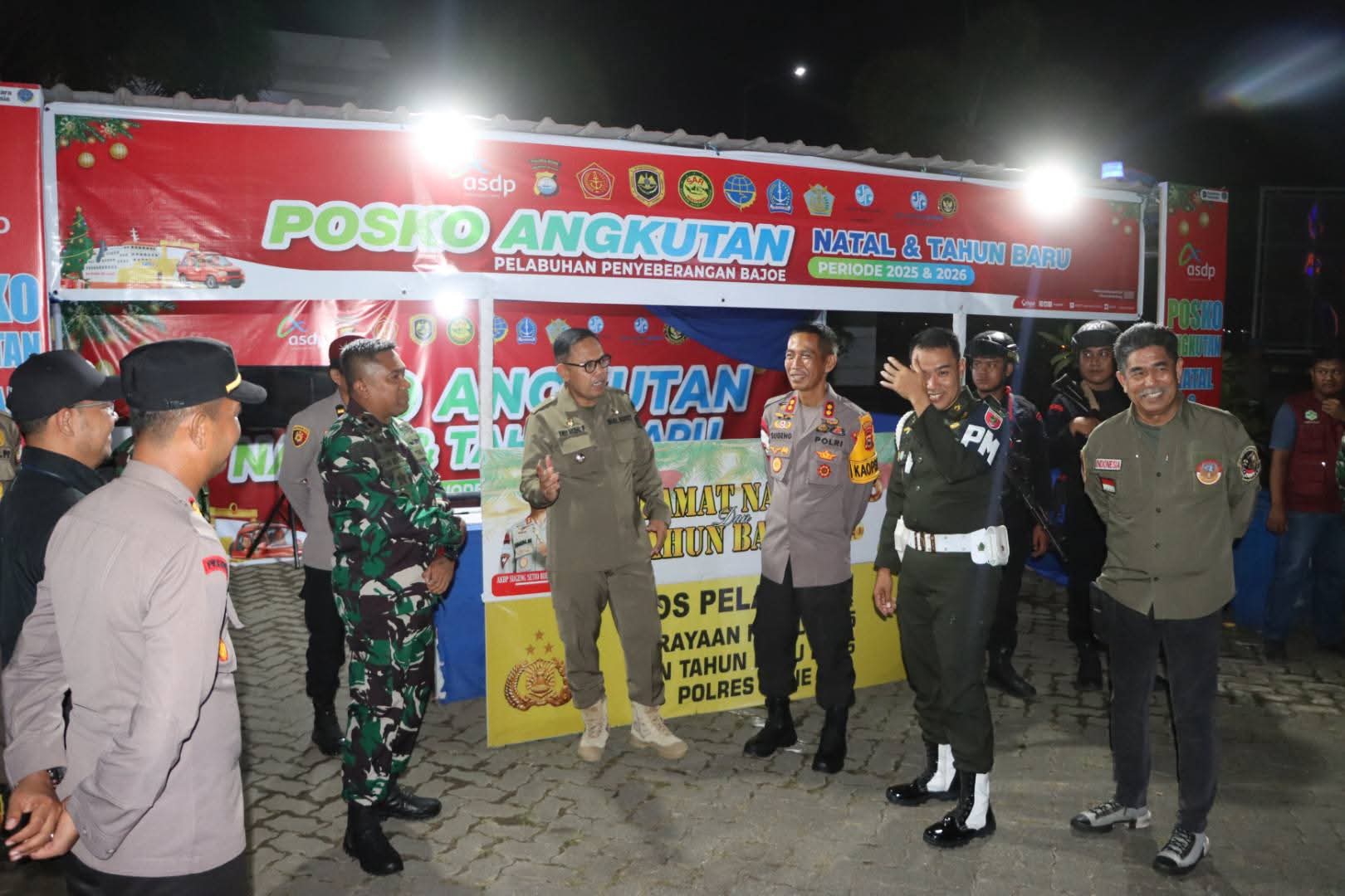 Selain itu, rombongan patroli gabungan juga mengunjungi Pos Pengamanan penyeberangan Pelabuhan Bajoe. Di kawasan pelabuhan, dilakukan pengecekan terhadap kesiapsiagaan personel, situasi arus penyeberangan, serta langkah-langkah pengamanan untuk menjamin kelancaran dan keselamatan masyarakat yang melakukan perjalanan selama libur Nataru.