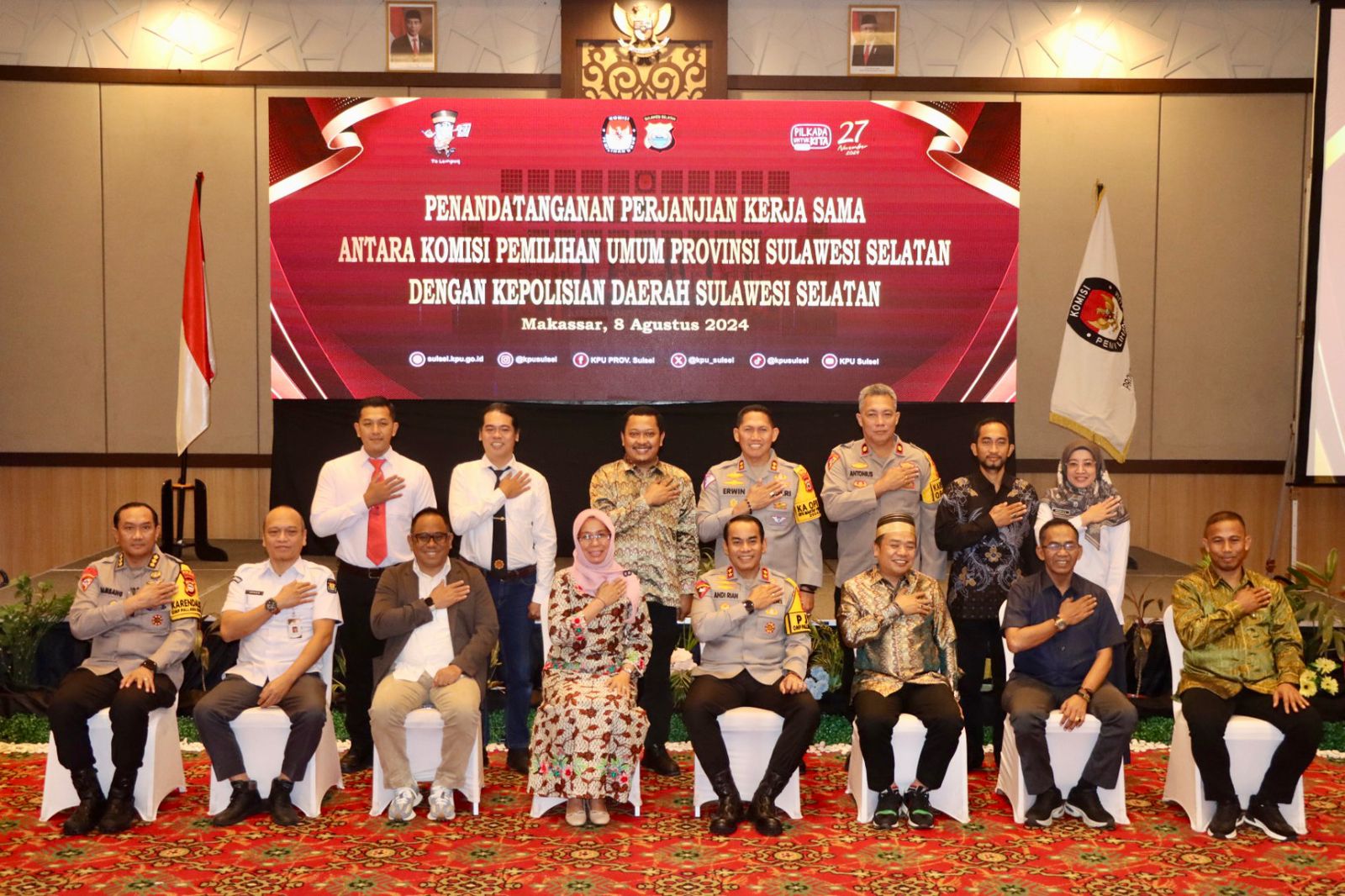 Kegiatan ini dihadiri oleh Kapolda Sulsel, Irjen Pol Andi Rian R Djajadi, yang menyatakan komitmen penuh pihak kepolisian untuk mengawal jalannya pemilu serentak di Sulawesi Selatan. Kapolda menegaskan pentingnya sinergi antara semua pihak yang terlibat untuk mewujudkan pemilu yang damai, aman, adil, dan jujur.
