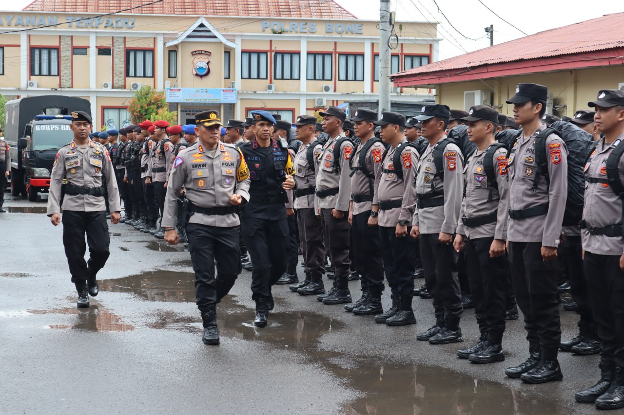 BONE – Kepolisian Resor Bone gelar apel pengecekan kesiapan Personel pengamanan Tempat Pemungutan Suara (TPS) dalam rangka persiapan Pemilihan Kepala Daerah Serentak tahun 2024 Dalam Operasi Mantap Praja 2024-2025 . Rabu (20/11/2024)