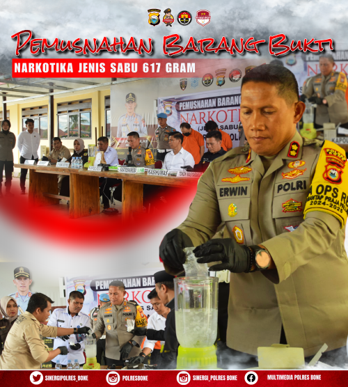 Kapolres Bone AKBP Erwin Syah, S.I.K.,M.H menyampaikan bahwa, Sabu yang di musnahkan ini merupakan Barang bukti dari pria berinisial HA (44) dan WD (40) alamat Jl. Pampang 04, Kelurahan Pampang, Kecamatan Panakukang.