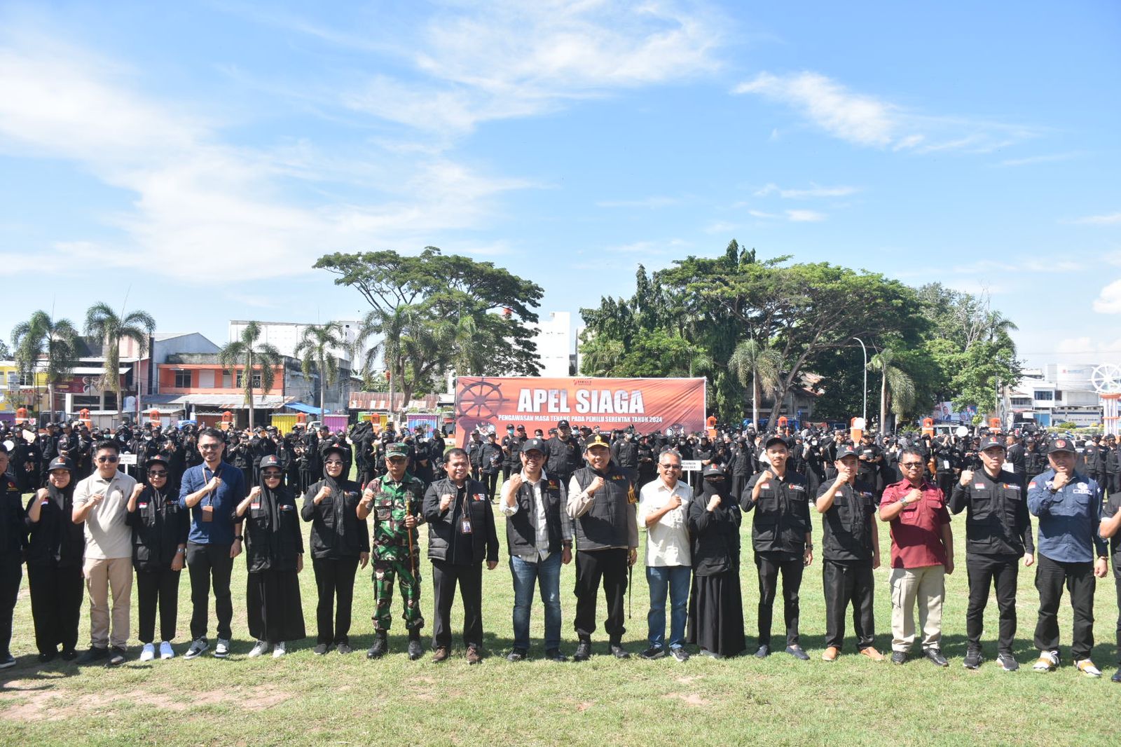 Saat apel, tampak pengawas pemilu di Bulukumba mengenakan pakaian hitam-hitam.