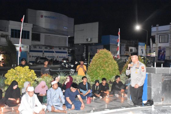 BULUKUMBA – Kapolres Bulukumba AKBP Restu Wijayanto, S.I.K bersama unsur Forum Koordinasi Pimpinan Daerah (Forkopimda) menghadiri kegiatan doa bersama dan penyalaan 1000 lilin untuk mengenang para korban kerusuhan yang terjadi di Jakarta dan Kota Makassar. Acara ini digelar di Bundaran Pinisi, jantung Kota Bulukumba, Minggu malam (31/8/2025).