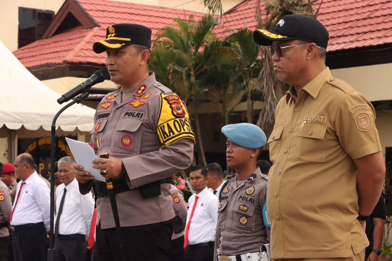 Luwu Timur – Polres Luwu Timur menggelar pasukan untuk menandai dimulainya Operasi Lilin 2024 dalam rangka pengamanan perayaan Nataru (Natal 2024 dan Tahun Baru 2025). Apel gelar pasukan tersebut berlangsung di Lapangan Mapolres Luwu Timur pada Sabtu (21/12/2024) dengan Kapolres Luwu Timur, AKBP Zulkarnain, dan Bupati Luwu Timur, Budiman Hakim, bertindak sebagai inspektur apel.