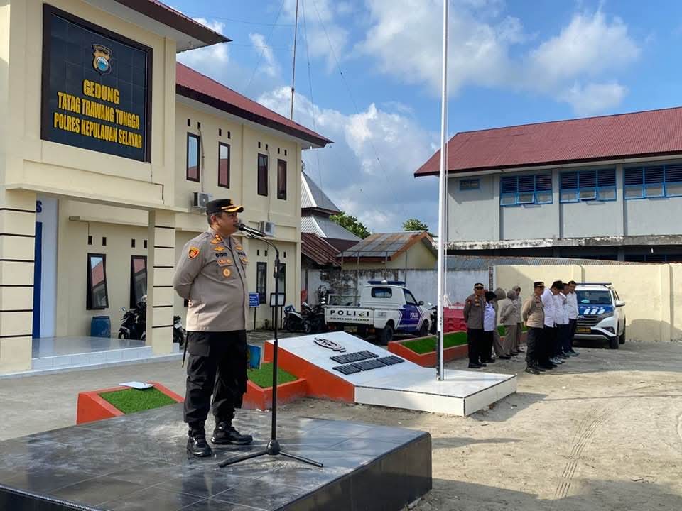 KEPULAUAN SELAYAR – Kapolres Kepulauan Selayar AKBP Didid Imawan, S.I.K., S.H., M.Tr.Mil. menegaskan kebanggaannya bertugas di Bumi Tanadoang yang dikenal memiliki kesadaran kamtibmas tinggi di tengah masyarakat. Hal tersebut ia sampaikan saat memimpin apel pagi di halaman Mapolres, Rabu (20/8/2025), yang diikuti Wakapolres, Para kabag, kasat, perwira, bintara, serta ASN lingkup Polres Selayar.