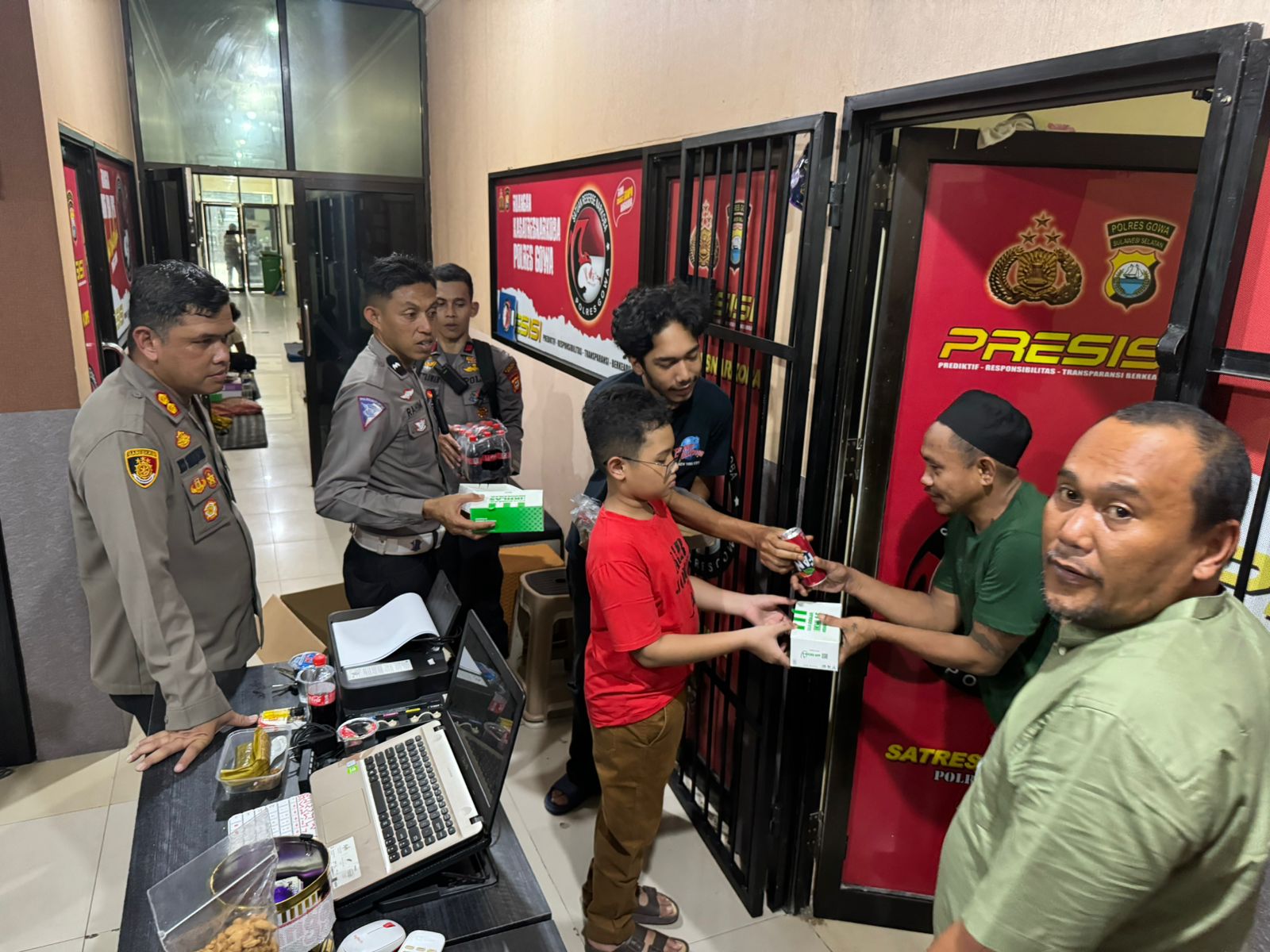 Dalam semangat kebersamaan dan persaudaraan di Hari Raya Idul Fitri 1445 H/2024, , Kapolres Gowa, AKBP R.T.S Simanjuntak, S.H., S.I.K., M.M., M.I.K., bersama putranya turut serta dalam kegiatan berbagi makanan kepada tahanan Polres Gowa, Rabu (10/04/2024).