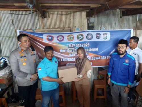 GOWA – Dalam rangka pra peringatan Hari Buruh Nasional (May Day) yang jatuh pada 1 Mei, Polres Gowa bersama Dewan Pimpinan Cabang (DPC) Konfederasi Serikat Pekerja Seluruh Indonesia (KSPSI) Kabupaten Gowa menggelar kegiatan bakti sosial, Rabu (30/4), bertempat di kediaman Haeruddin Dg. Supu, Jalan Manggarupi, Kelurahan Paccinongang, Kecamatan Somba Opu, Kabupaten Gowa.