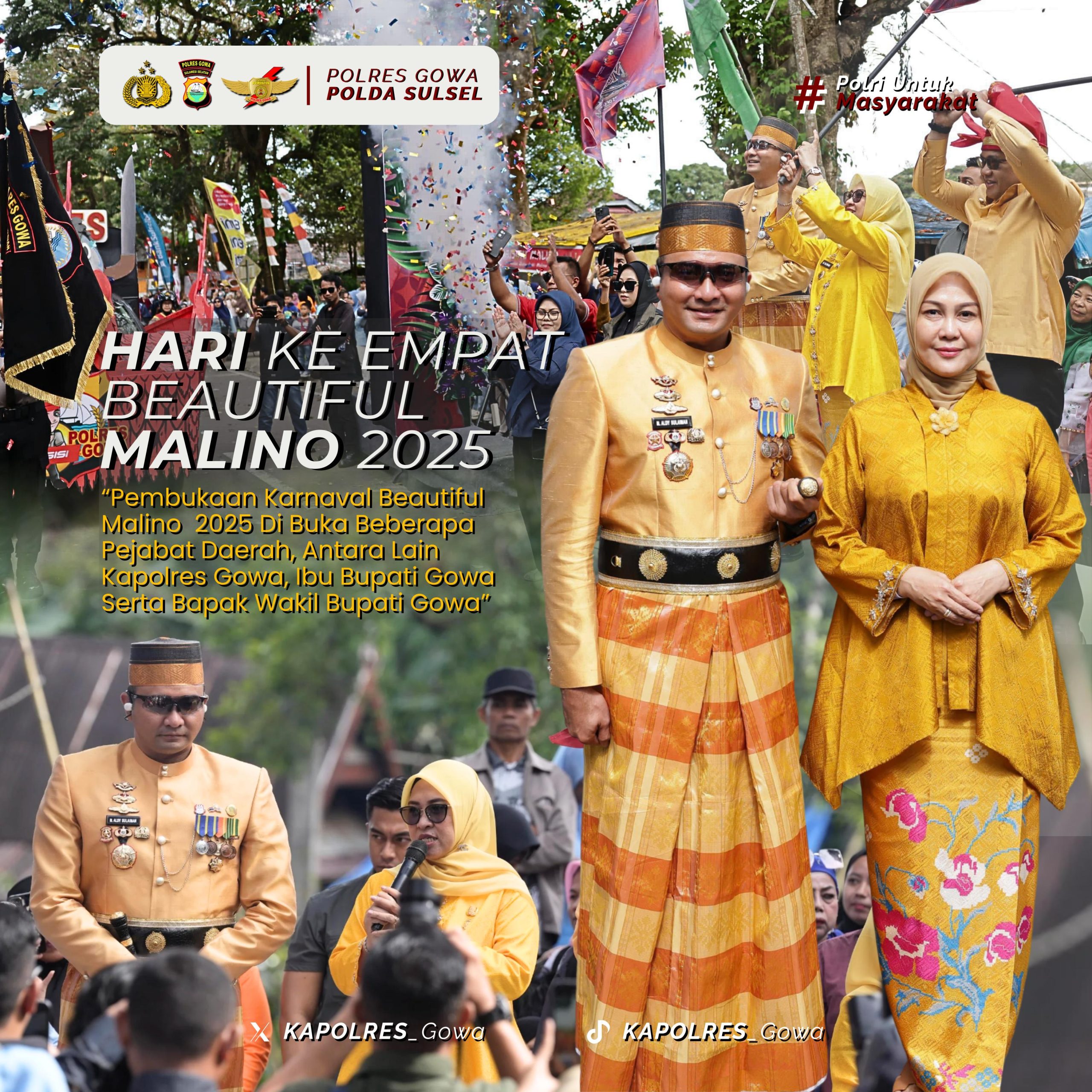 Kapolres Gowa, AKBP Muhammad Aldy Sulaiman, S.I.K., M.Si., didampingi Ketua Bhayangkari Cabang Gowa, Ny. Dessy Aldy, pada Sabtu (12/7/2025), menghadiri dan ikut meresmikan pembukaan Karnaval Beautiful Malino 2025 yang digelar di Jantung Kota Malino, Kecamatan Tinggimoncong, Kabupaten Gowa.